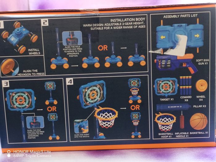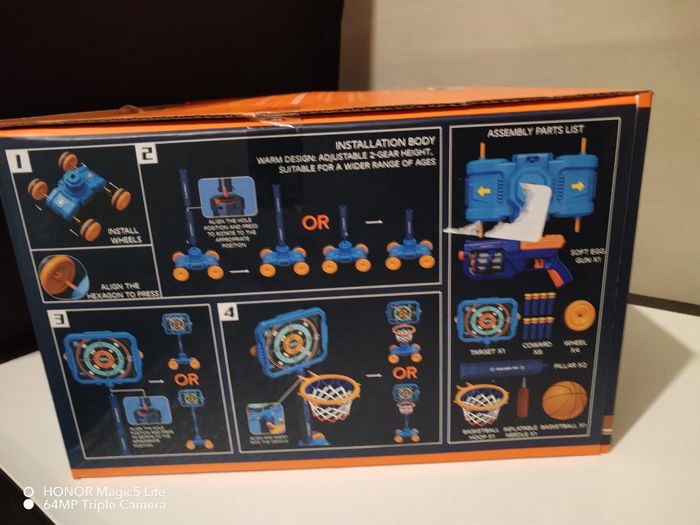 Peut s’utiliser comme Mini Panier de Basket ou comme Cible de Tir avec le pistolet à fléchettes.