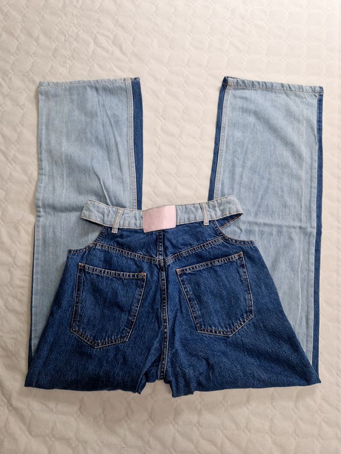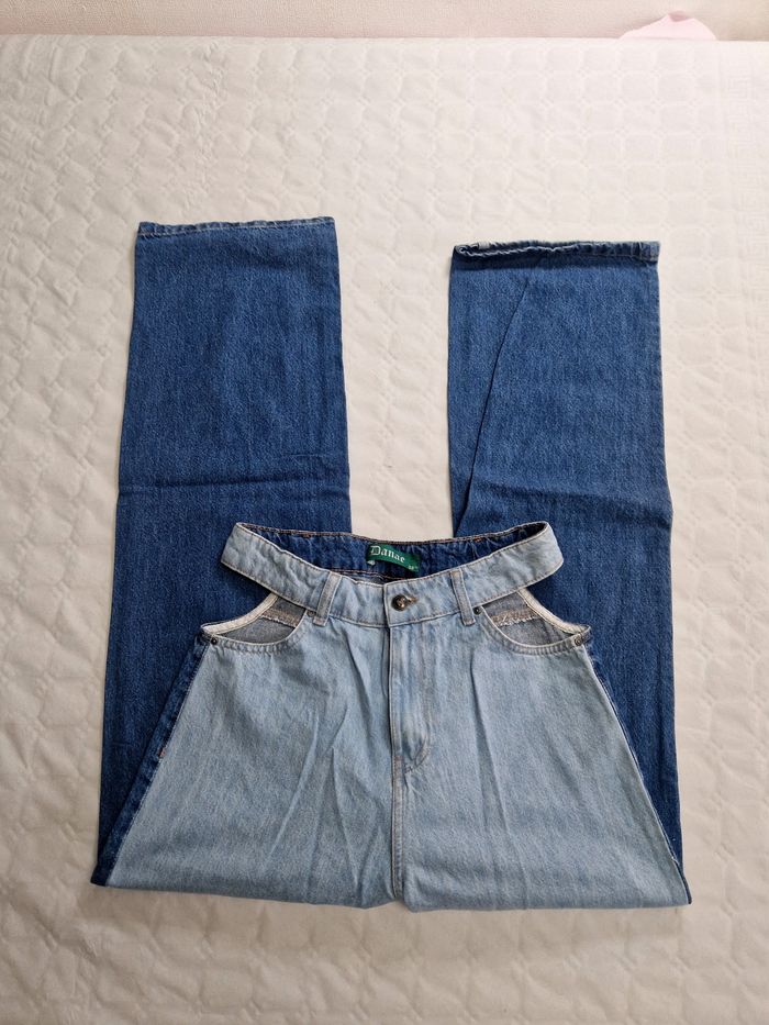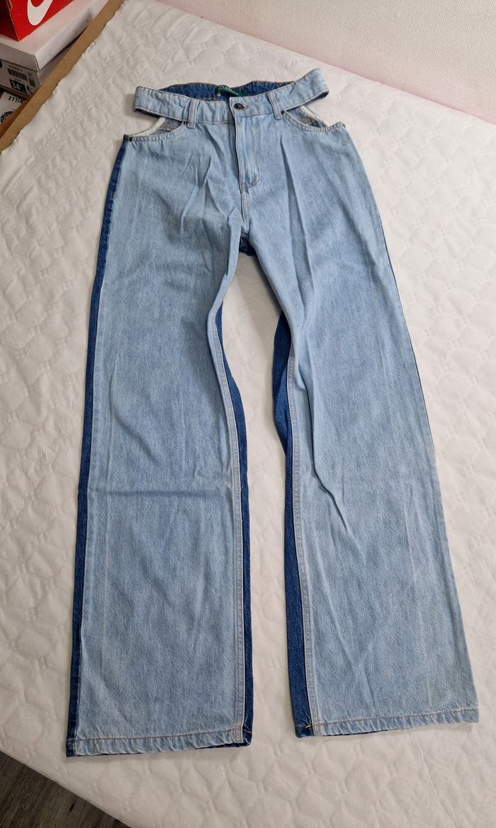 Jeans femme Y2K , bicolore , ajourée aux hanches , taille 38
