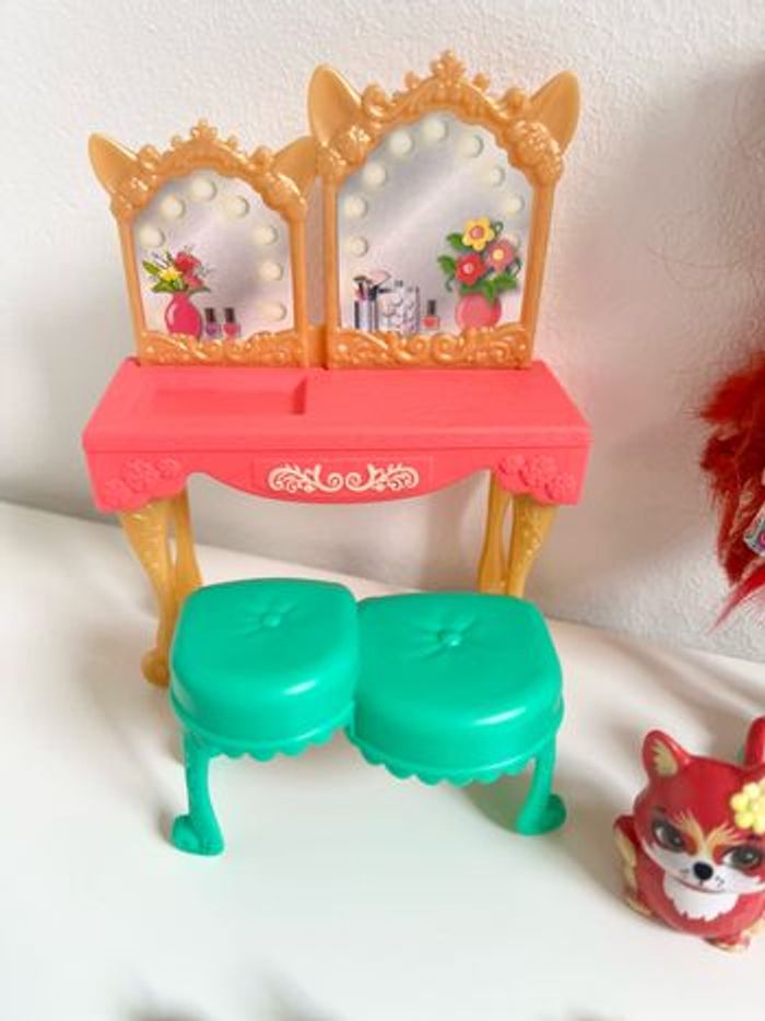 Cette coiffeuse de style ancien aux décorations délicates est dotée d'un double miroir et d'un double siège, les enfants vont pouvoir se faire une beauté en compagnie de ces meilleurs amis renards