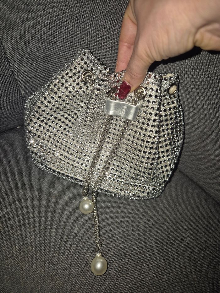 Sac argenté effet bourse avec chaîne pour bandouliere