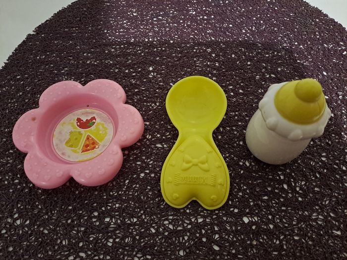- A prendre soin de Minnie grâce aux différents accessoires : une tétine pour calmer Minnie quand elle pleure (elle détecte la présence de la tétine dans la bouche), une petite assiette et une cuillère et un biberon avec un hochet intégré.