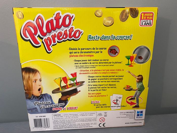 Jeu de société Plato presto Megableu A partir de 5 ans Fonctionne avec 3 piles LR03 non fournies Neuf juste déballé pour la photo Acheté 29€99