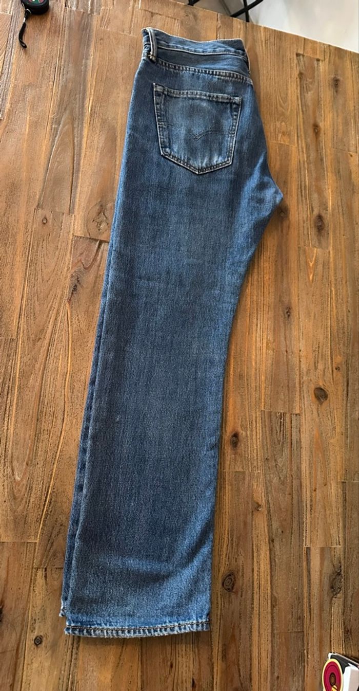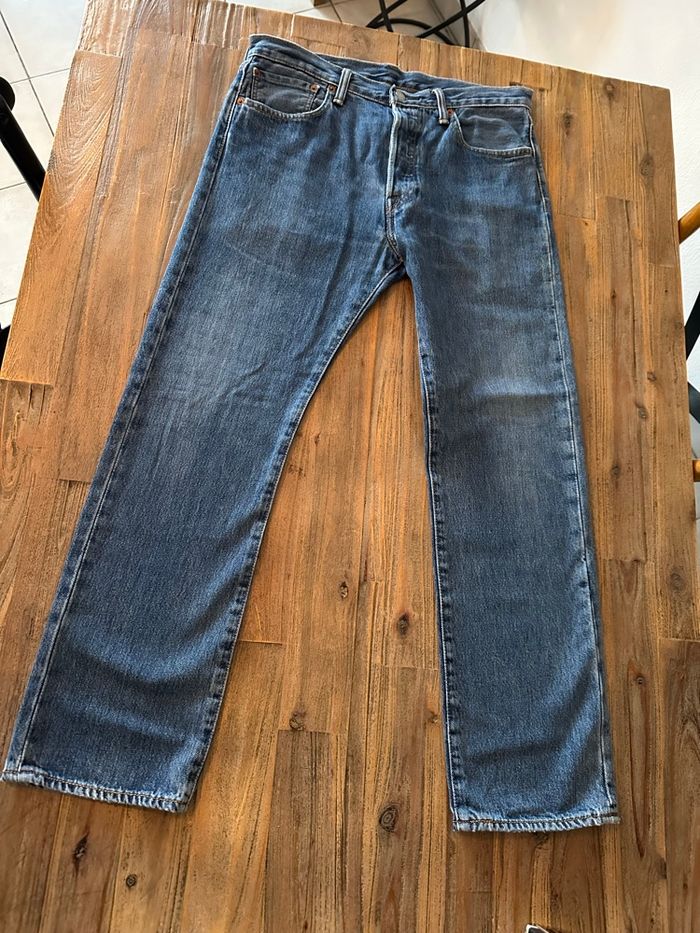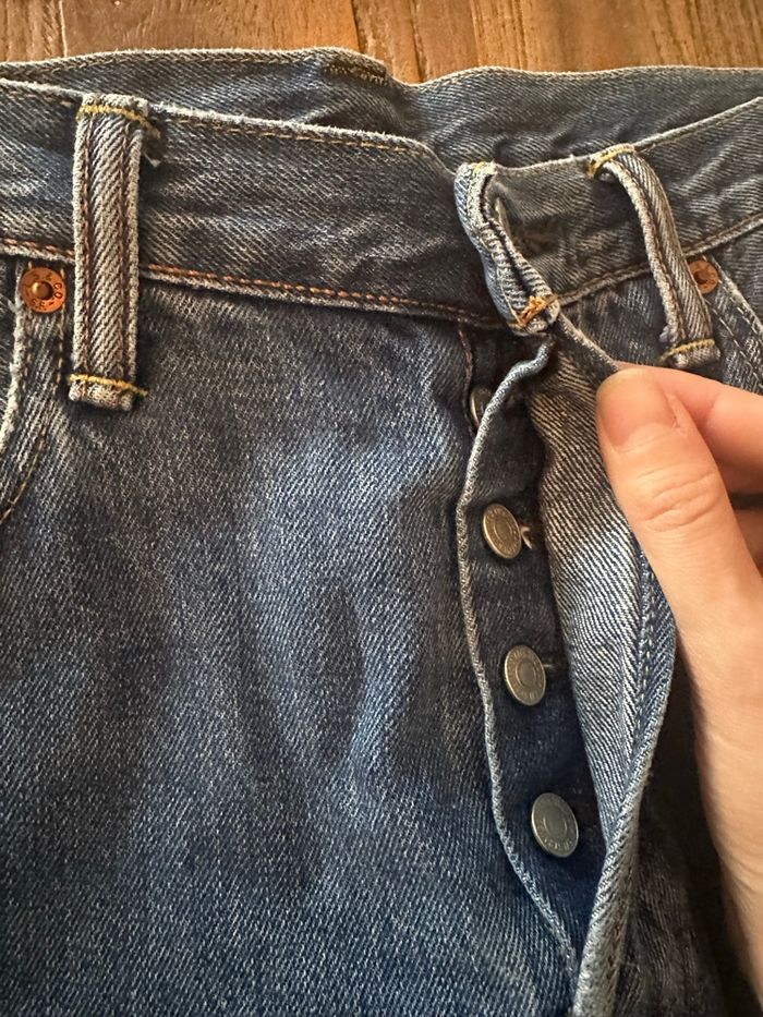 Authentique Levi’s 501 Original, modèle iconique à la coupe droite et taille haute.