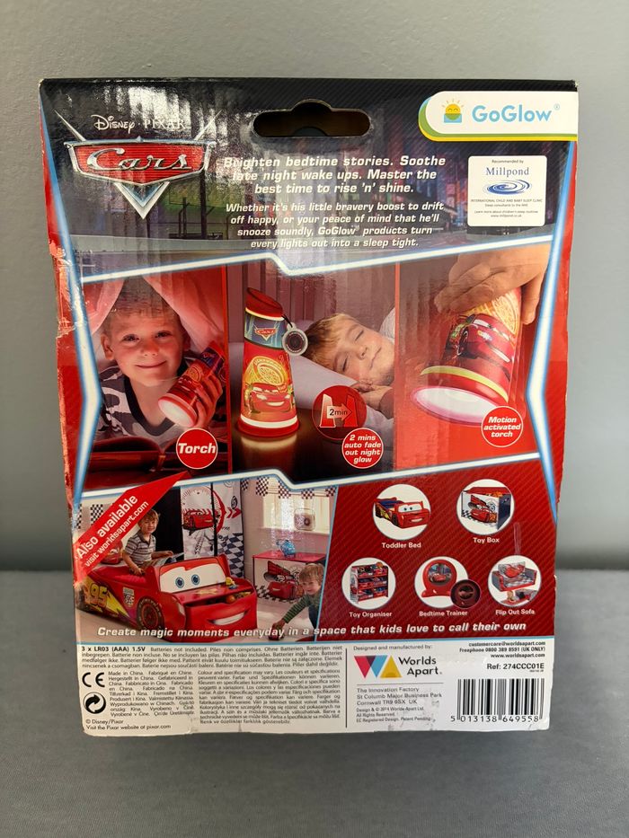 Lampe de nuit Cars Cette lampe de poche 2-en-1 avec détecteur de mouvement et veilleuse aide votre petit fan de Cars à dormir après une journée d'aventures heureuses. Dès que vous inclinez la lampe, elle s'allume pour illuminer la pièce. Lorsque vous la tournez à une position debout normale, elle se transforme en une veilleuse paisible qui s'éteint doucement après 2 minutes. Nickelodeon Fonctionne avec 3 piles LR03 (AAA) non incluses A partir de 3 ans J'ai mis bon état car mon fils l'a utilisé souvent mais elle est en très bon état juste des marques d'utilisation, emballée dans son emballage d'origine prête à offrir. Acheté 19€99