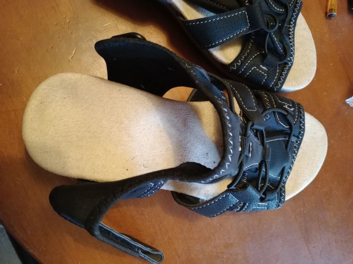 Chaussures été légère. Taille petit ( pas de pointure mais trop petit pour moi. Envi 36/37). Fermeture à scratch au talon