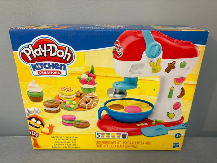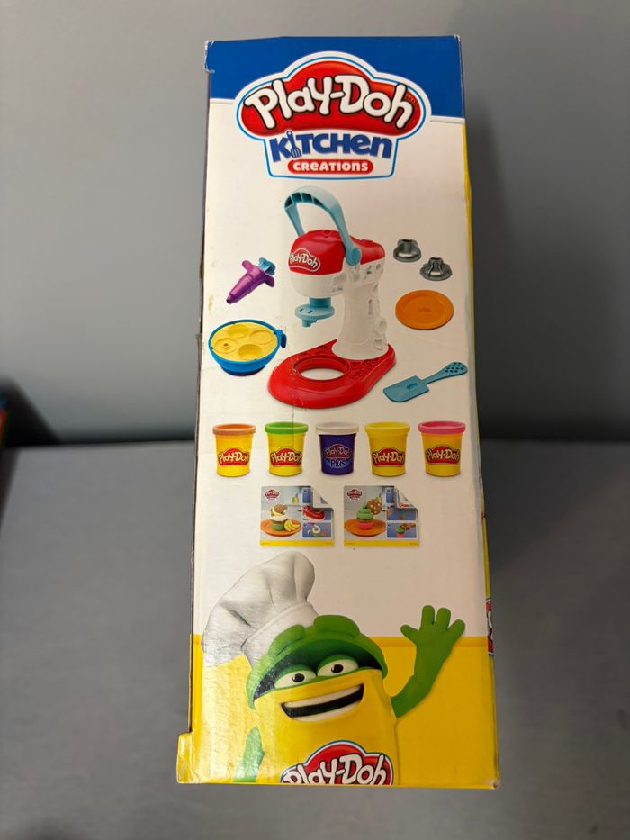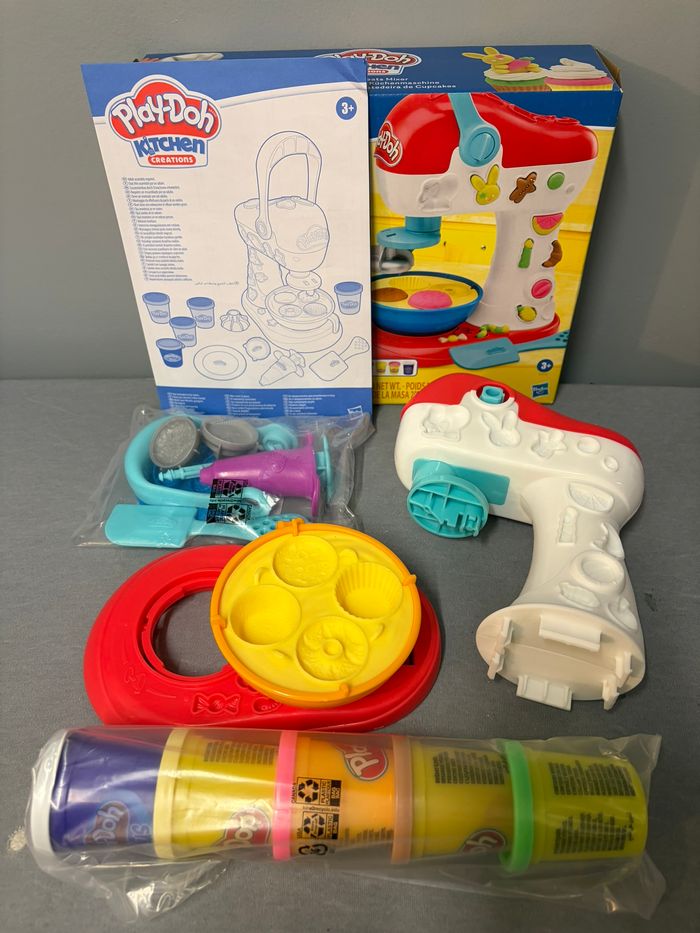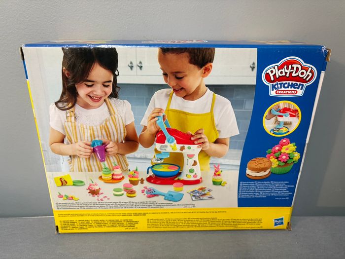 Des petits gâteaux aux biscuits Play-Doh colorés, les jeunes pâtissiers réaliseront les gourmandises les plus créatives qui soient avec leur propre robot pâtissier ! Le bol amovible et les 2 poinçons permettent de créer des combinaisons amusantes. Il suffit de choisir le poinçon à biscuit ou à gâteau, d'insérer un peu de pâte Play-Doh dans le bol pivotant et de presser la poignée. C'est tout ! On décore ensuite les gâteaux en les couvrant de glaçage à l'aide de la spatule et des moules présents sur le robot. En manque d'inspiration? Les fiches de recette montrent comment créer d'autres créations gourmandes comme un fraisier et des macarons.