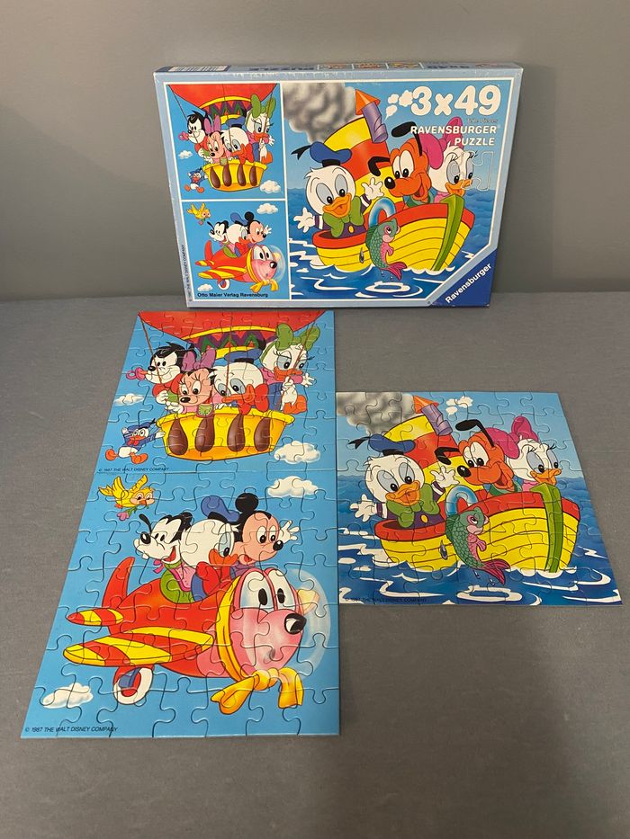 3 Puzzles enfant 49 pièces Ravensburger Disney Complet A partir de 5 ans Ce puzzle m'appartenait quand j'étais petite donc il est ancien avec une usure du temps.