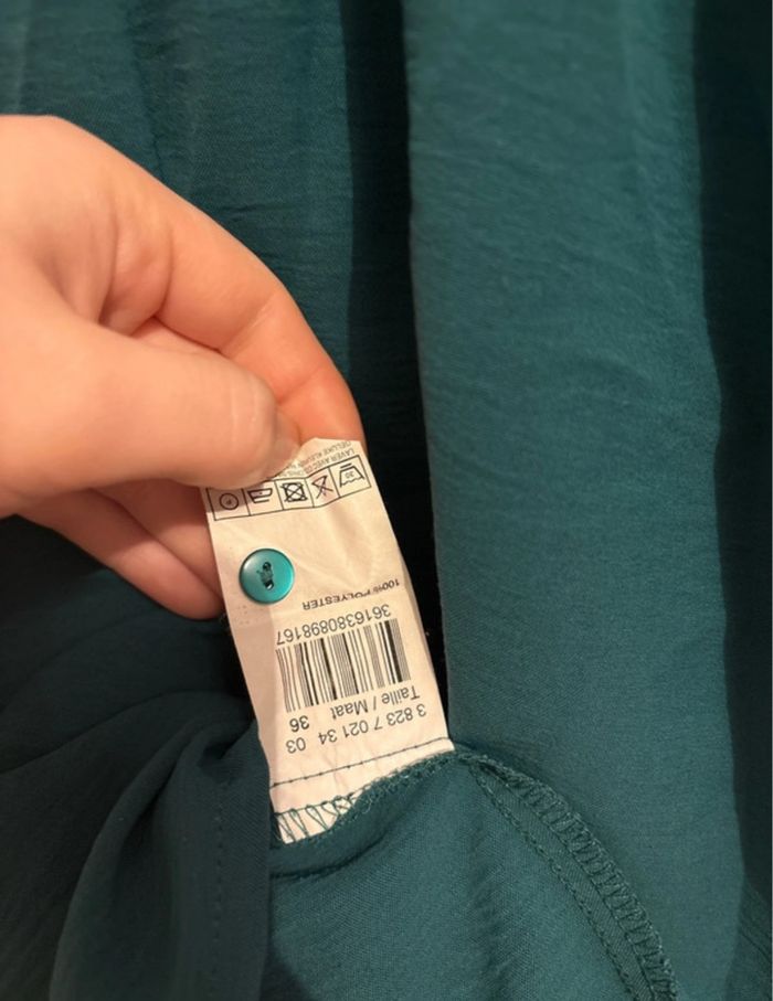 Bouton au dos avec bouton supplémentaire sur l’étiquette à l’intérieur, dos un peu ouvert
