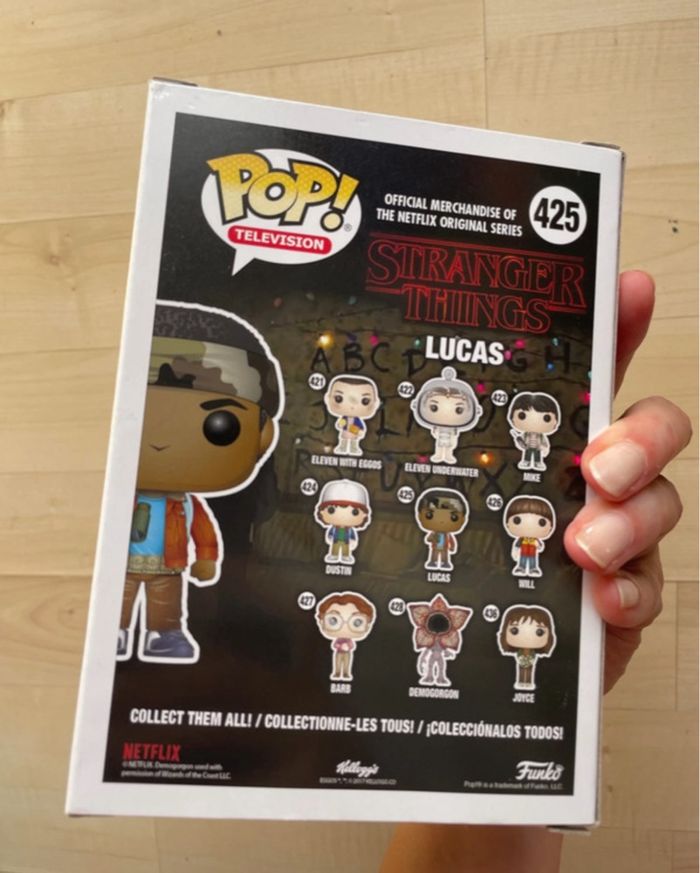 Figurine pop. Lucas. 425 Stranger things Haut de la boite un peu abimée voir photo