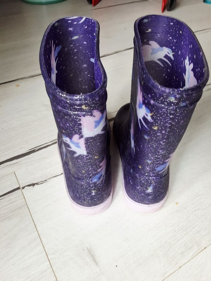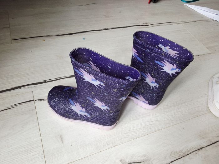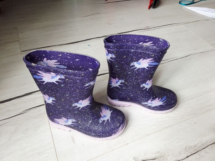 Chaussures bottes de pluie violettes licorne pailletées pointure 25 Neuves