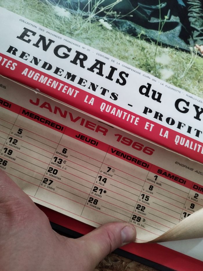Ancienne calendrier de 1966. Les engrais du Gy. (62)