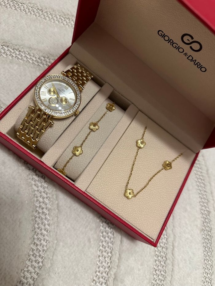 Coffret montre bracelet et collier en acier inoxydable