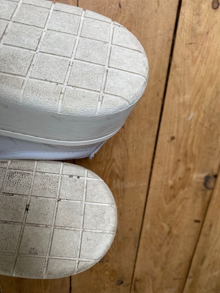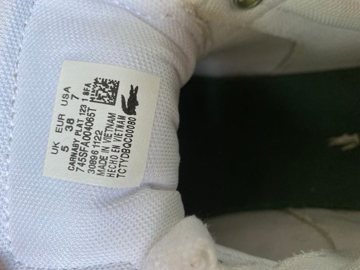 Peu portées , 2 ou 3 fois Baskets plates blanches en cuir Marque Lacoste Carnaby plat Pointure 38 Semelles rembourrées Doublure protégeant du froid Modèle à plateforme massive inspiré des courts de tennis : Un classique Lacoste avec une touche streetwear moderne. Doublure en textile : Aération optimisée. Les semelles de propreté OrthoLite amortissent les pieds. Semelle extérieure en caoutchouc : Bonne adhérence. Style épuré Prix magasin 110€