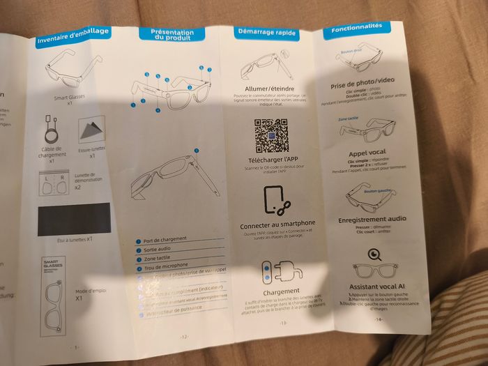 État neuf Couleur Noir Description Elles se connectent directement au téléphone et intègrent : • Une caméra intégrée (photos et vidéos) • Enregistrements vocaux • Réception des appels directement via les lunettes • Écoute de musique • Assistance IA avec interaction vocale • Traduction en ligne en temps réel Les lunettes sont équipées de verres de soleil de très bonne qualité, avec protection anti‑UV et filtre anti‑lumière bleue, confortables pour un usage quotidien. Produit pratique pour les personnes aimant la technologie, la création de contenu ou l’usage mains libres (dans le respect de la législation). Satisfait ou remboursé