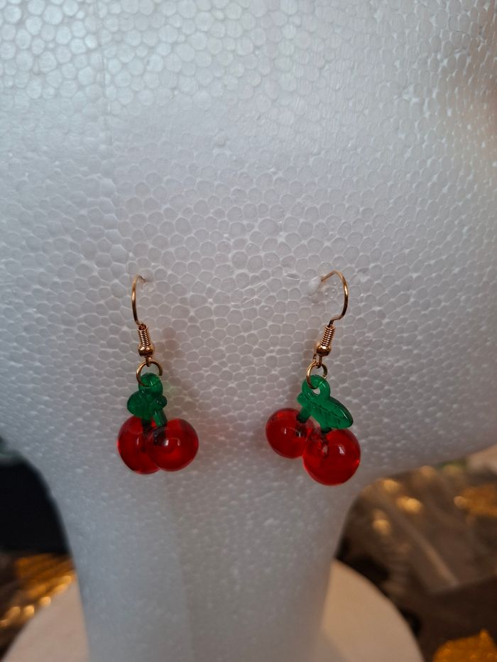 Boucles doreille cerise rouge neuf