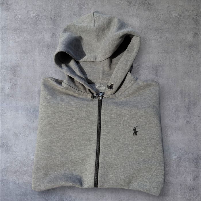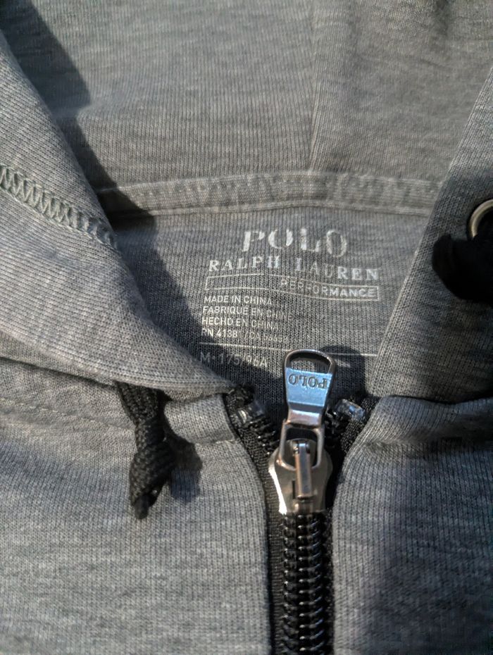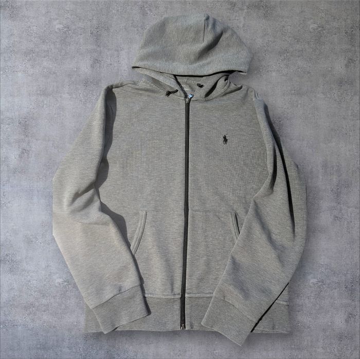 Pull zippé Ralph Lauren gris à capuche logo brodé noir