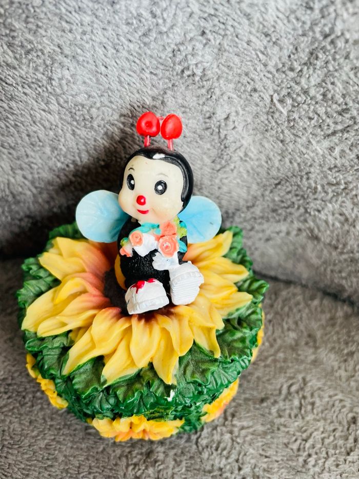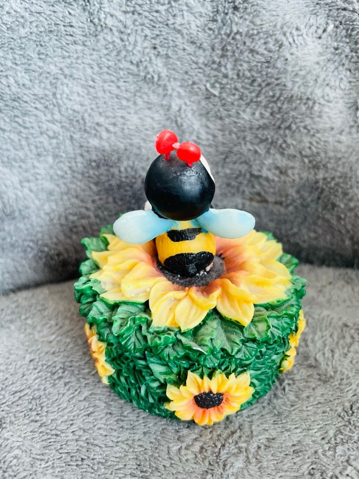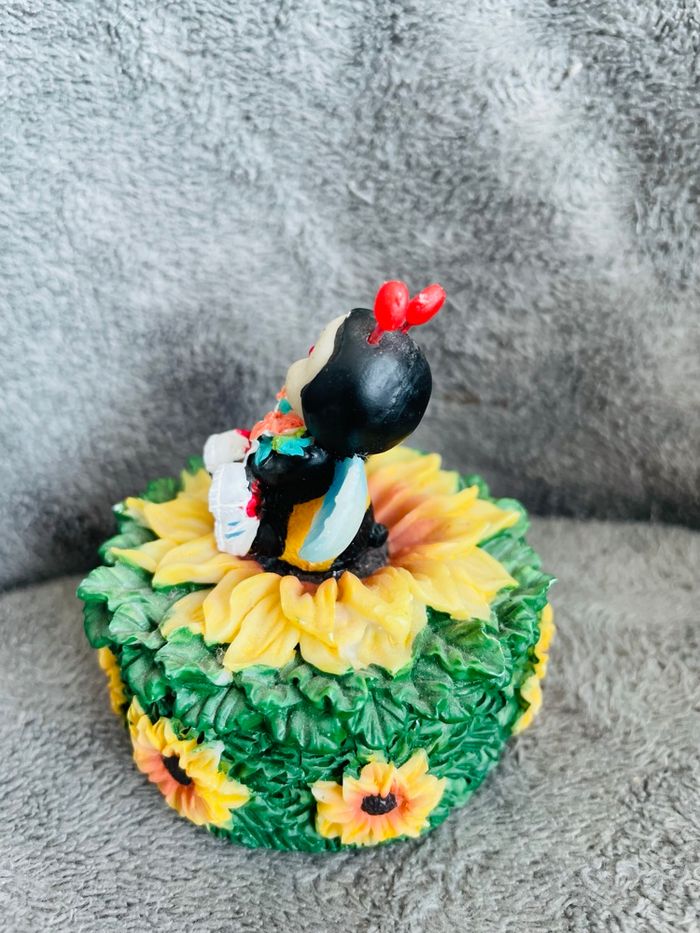 Jolie boîte en céramique avec une petite abeille et décor tournesols