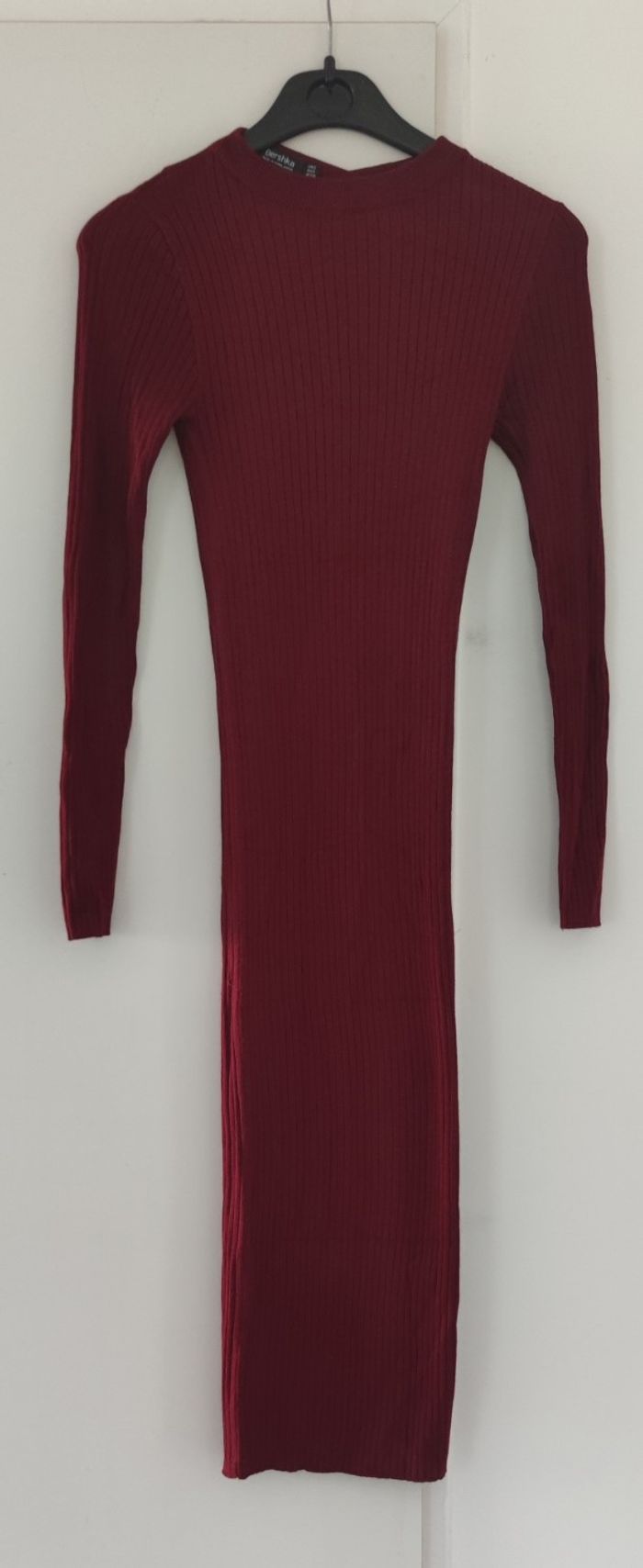 Robe à manches longues de la marque Bershka, de taille S et de couleur bordeaux. Robe en très bon état pour femme. Expédition dès le lendemain. Tour de poitrine 54 cm Tour de taille 44 cm Largeur épaule 27 cm Longueur manche 58 cm Longueur total 112 cm Prix 14€