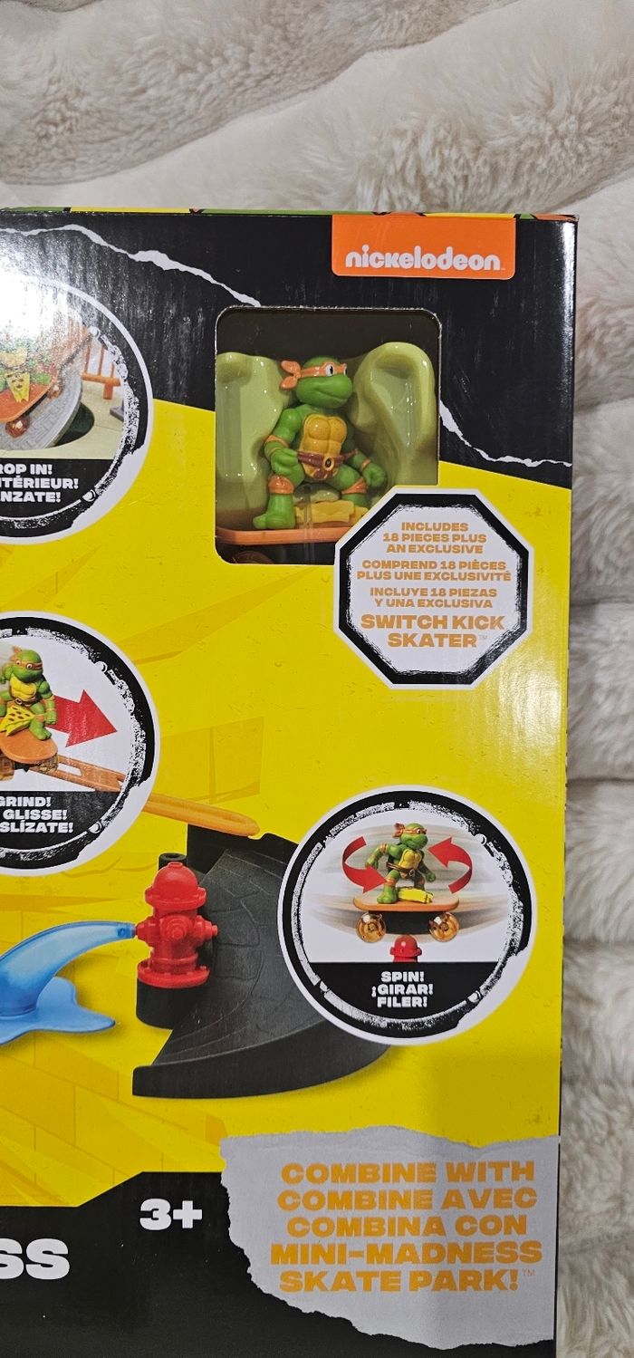 Le Turtles se compose de 4 parties avec différentes rampes originales. Au sommet de la grande tour se trouve une plaque d'égout inclinable permettant aux skateurs de glisser à l'intérieur du tuyau. Une turtle (Michelangelo) est fixée sur un skateboard et, grâce à une ficelle en plastique, on peut la faire dévaler les différentes rampes.
