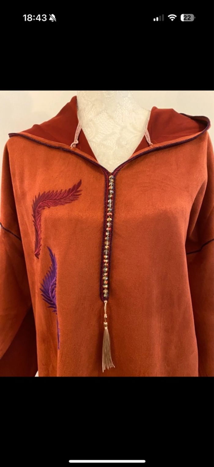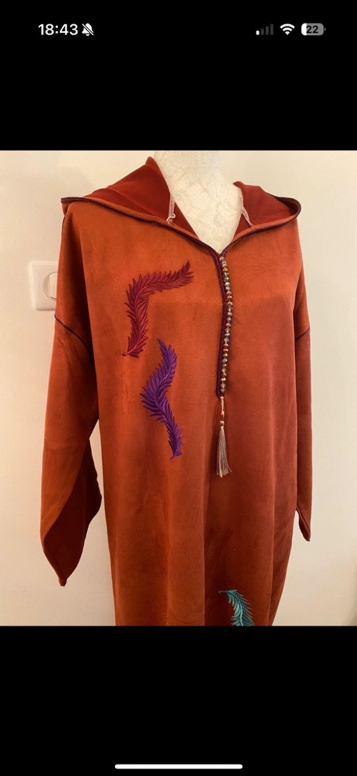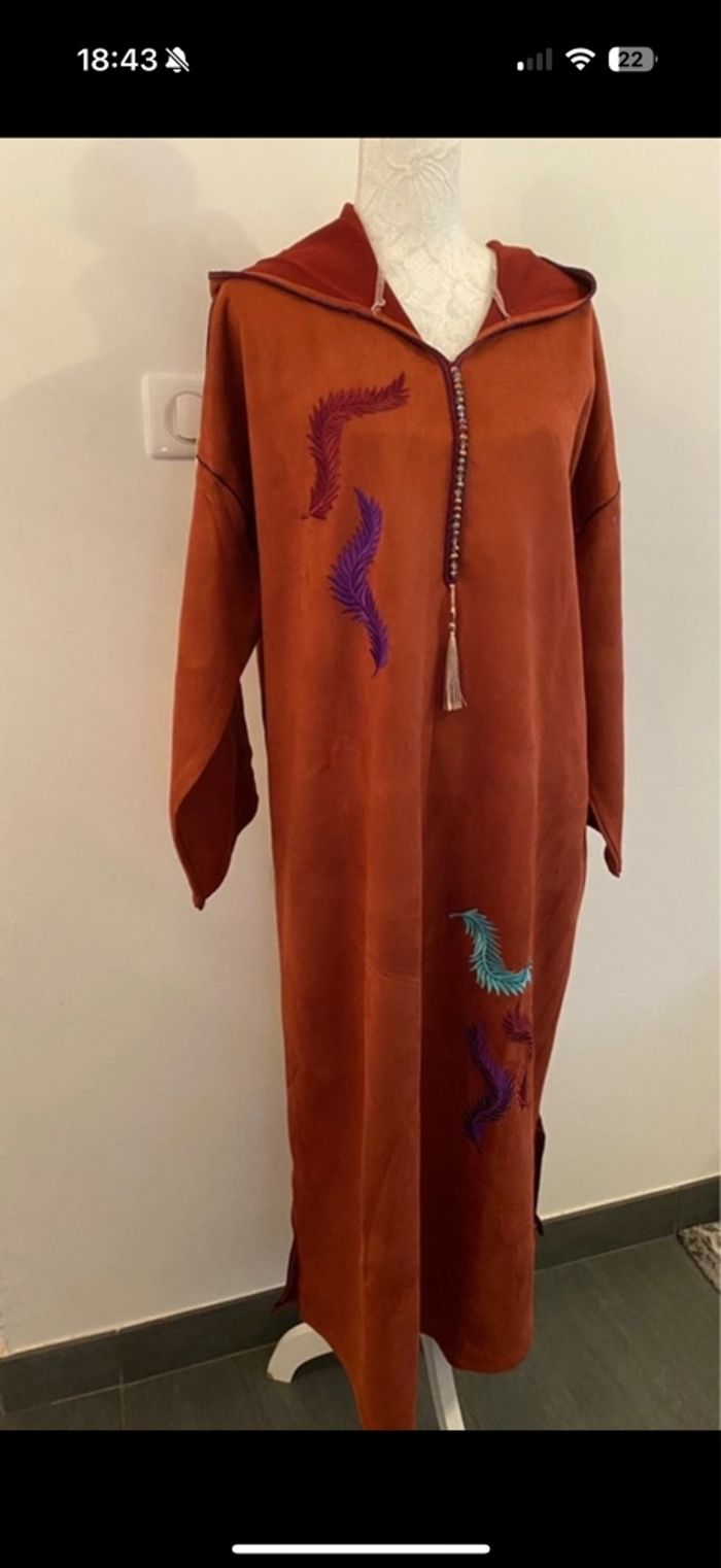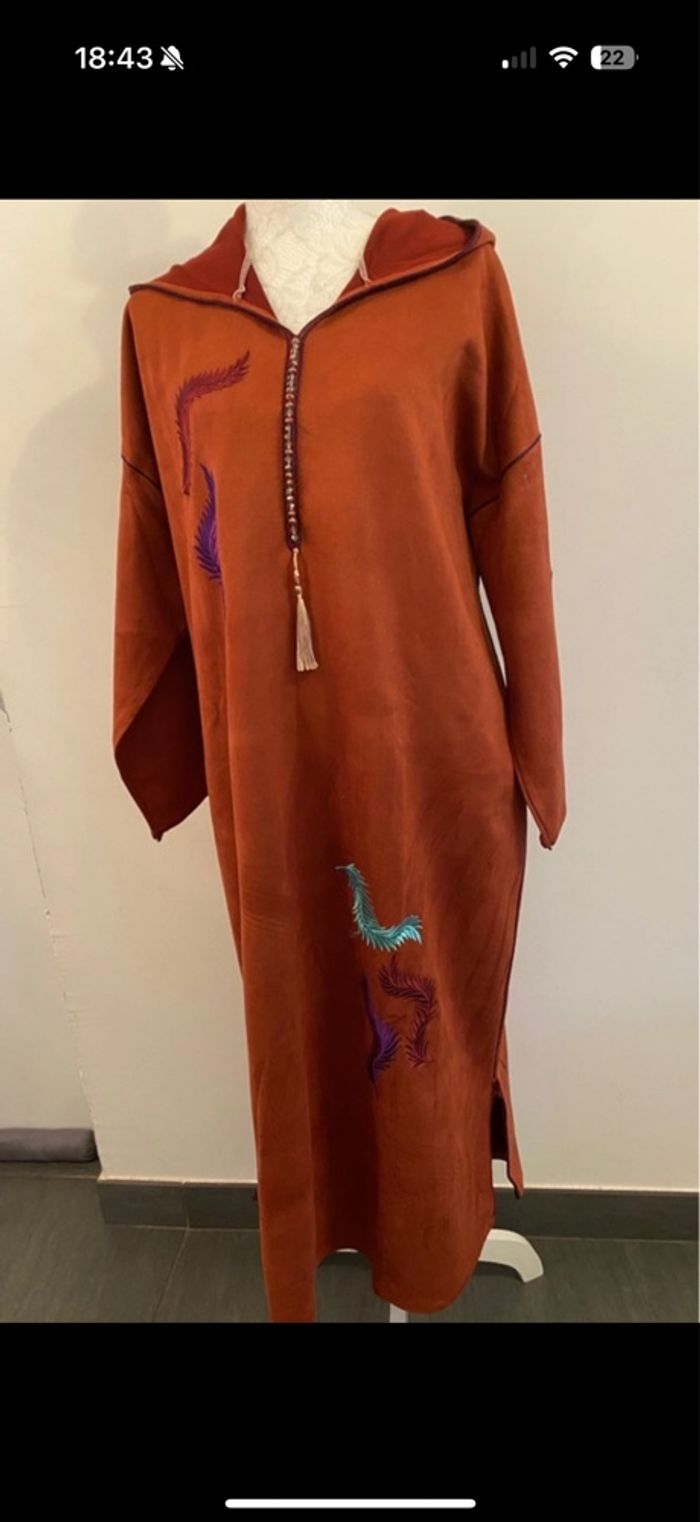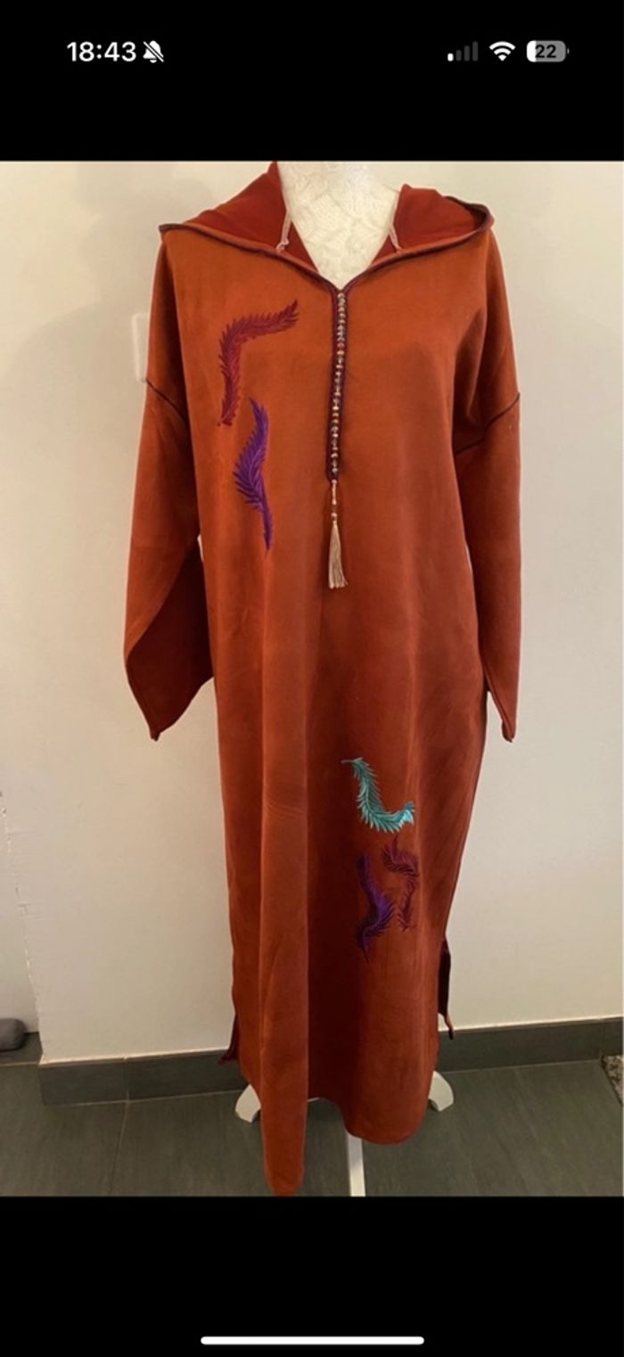 🌸 Élégante jellaba avec broderies, tissu épais pour l’hiver ou l’automne.