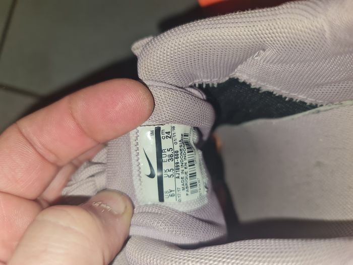 Petit détail : les étiquettes de pointure intérieure commençaient à se décoller (classique sur ce modèle), j’ai remis un tout petit point de colle propre .