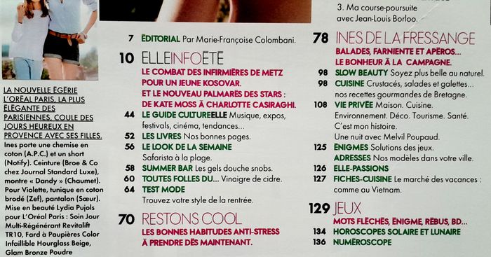 Magazine Elle été n°3424 aout 2011 spécial Ines de la Fressange et ses filles