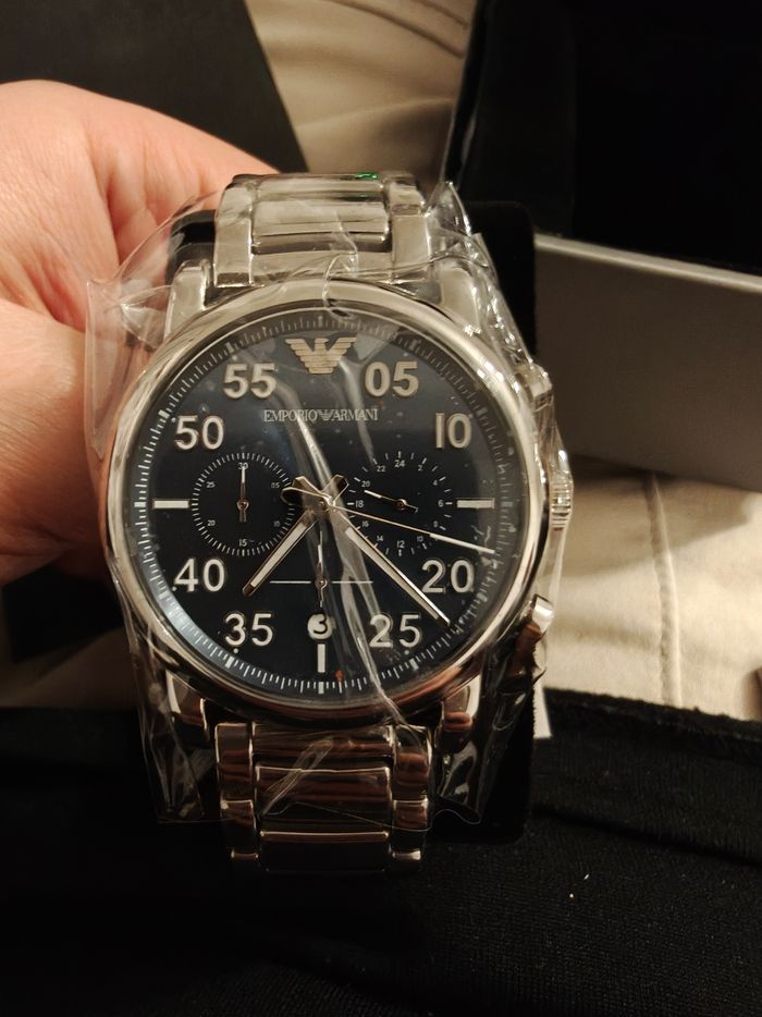 ⌚ Montre Emporio Armani AR11132 – Collection Luigi ✨ Élégance et style italien signé Armani 📦 État : Neuve / Jamais portée 🏷️ Modèle : AR11132 (référence officielle) 🔵 Cadran bleu soleillé avec 3 compteurs chronographe + date 🖤 Boîtier en acier inoxydable – Ø 43 mm 🔗 Bracelet en acier inoxydable (finitions brossées/polies) 🔒 Fermoir déployant sécurisé 💧 Résistance à l’eau : 5 ATM (50 m) ⏱️ Mouvement quartz précis ✅ Authentique, design moderne et intemporel ✅ Parfaite pour un look chic ou professionnel 🎁 Super idée cadeau haut de gamme