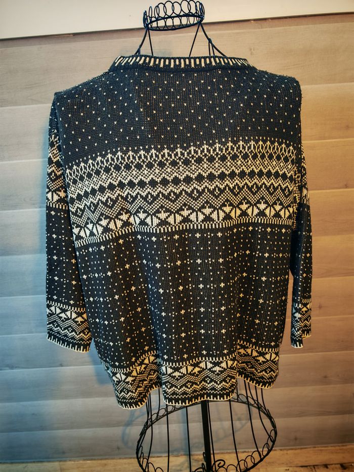 Pull de Noël Phildar jacquard norvégien noir & blanc