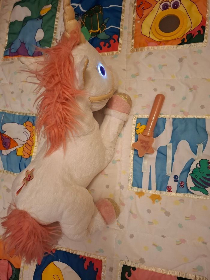 Pour prolonger la magie à l'heure du coucher et guider les enfants vers de doux rêves merveilleux, Lica Bella possède un mode silencieux, placez le boîtier piles sur le mode "mute", seules les lumières de la licorne s'allument.
