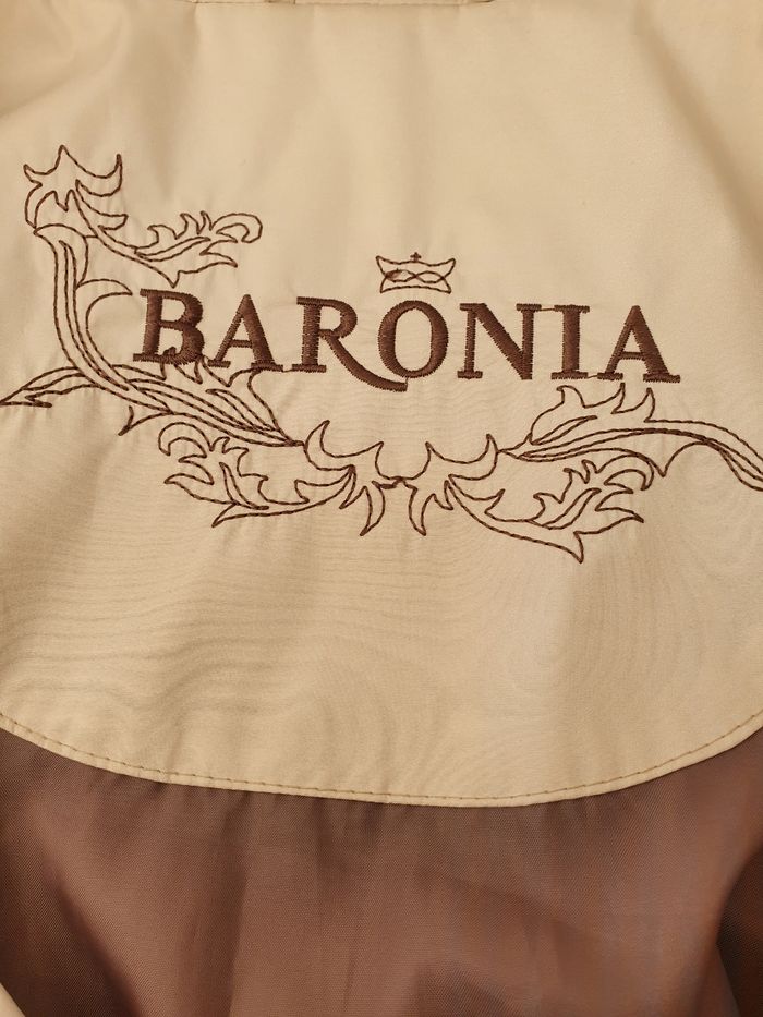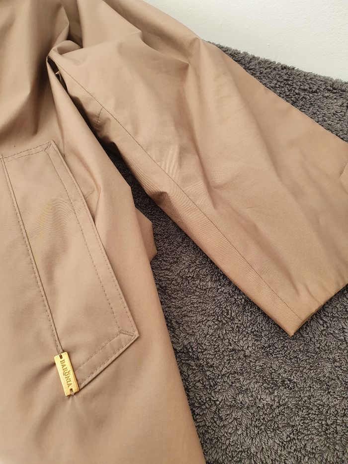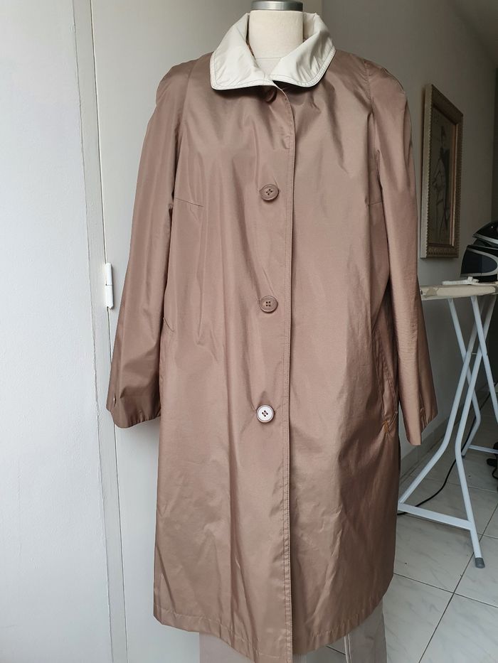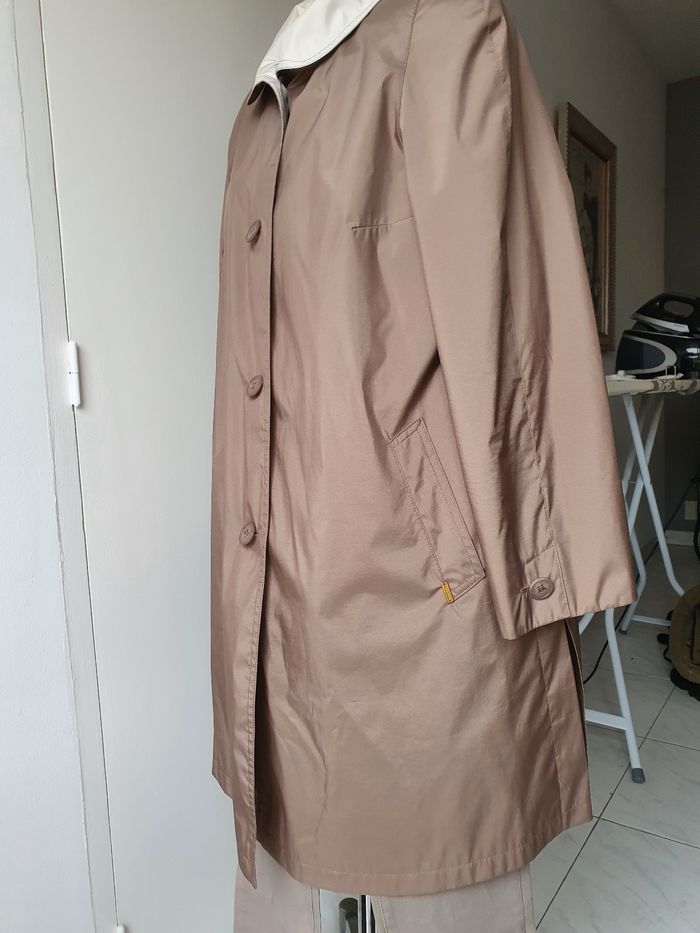 Imperméable/gabardine neuf, juste lavé jamais porté couleur capuccino et crème, forme évasée, petites épaulettes très fines,1 poche intérieur et 1 poches de chaque côté.