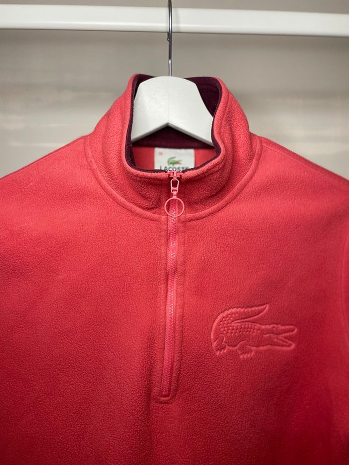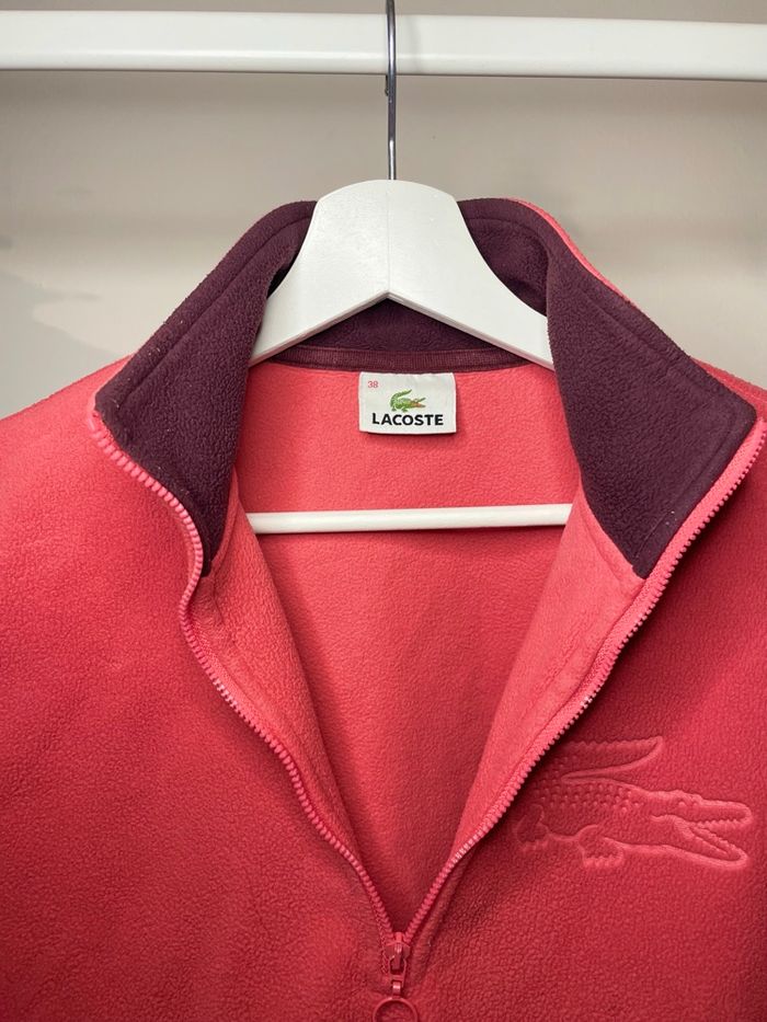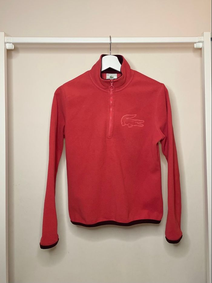 Pull polaire Lacoste authentique pour femme en excellent état de taille 38 M couleur rouge