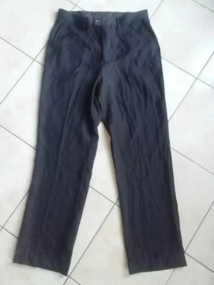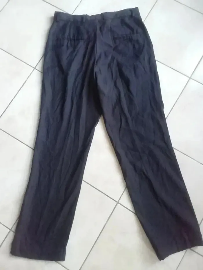 DE COULEUR NOIR. ETAT IMPECABLE!! PLUS DE TAILLE NOTEE SUR VETEMENT MAIS env 40; VOIR MENSURATIONS CI DESSOUS ET COMPERER AVEC UN PANTALON DE MEME STYLE QUI VOUS VA BIEN : LONGUEUR : env 107-108cm. LONGUEUR ENTREJAMBE : env 76cm. TAILLE A PLAT FERME : env 42cm (et tour de taille fermé : env 85cm).