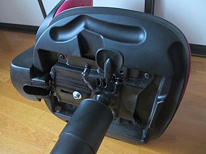Assise réglable en profondeur de 34 à 37 cm, hauteur de l’assise entre 42 et 47 cm, hauteur du dossier réglable également par mollette.