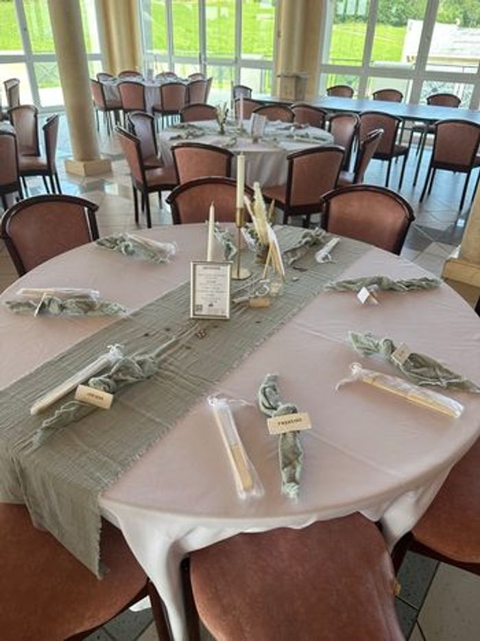 Lot de 9 chemins de table vert sauge en gaz de coton 2m de long (environ) sur 40cm de large