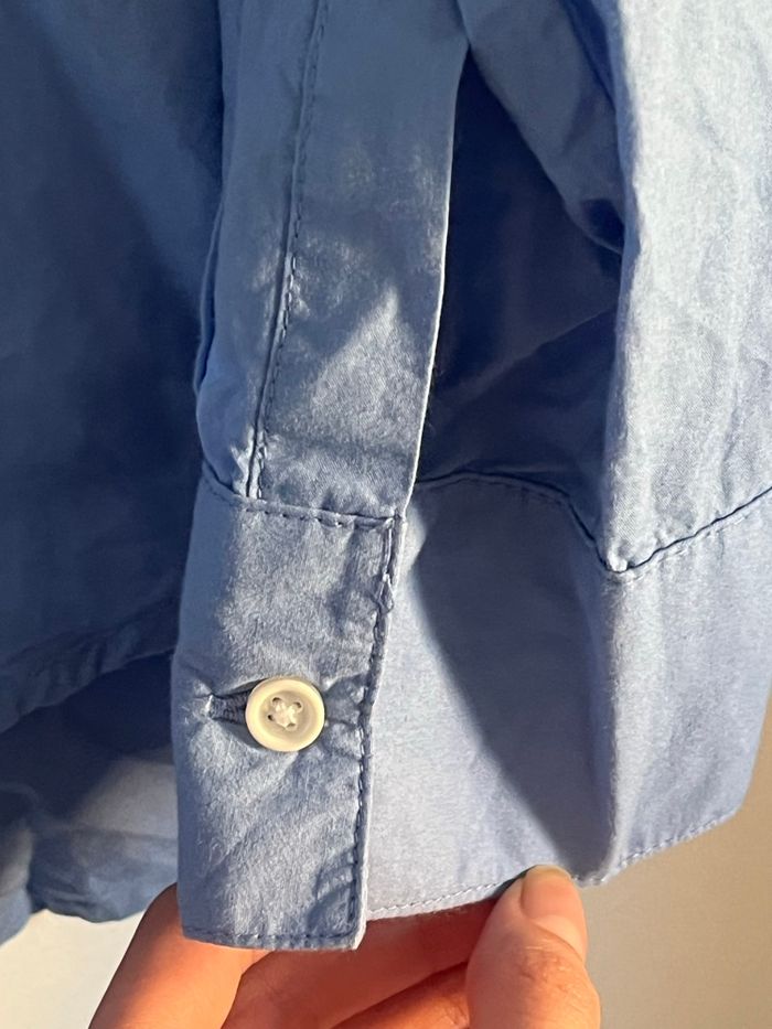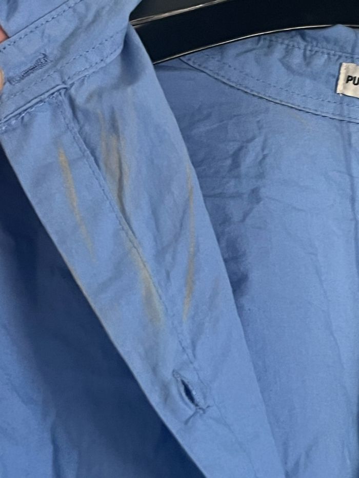 Chemise oversize bleu flashis pull and bear Taille S/36 Chemise oversize (Peut l’être encore + si découpe du fils arrière) Tissus léger Couleurs assez flash Contient une poche Présence de tache au niveau du col (Voir photo) —> prix réduit à cause de ça Plus longues derrière que devant Pas de retours, remboursement #chemise #pullandbear #oversize #taille36