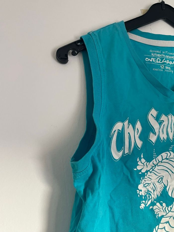 Débardeur turquoise avec imprimé État satisfaisant Taille 152 = 12 ans Pas de retours, pas de remboursement #adidas #vetement #garcon #sport