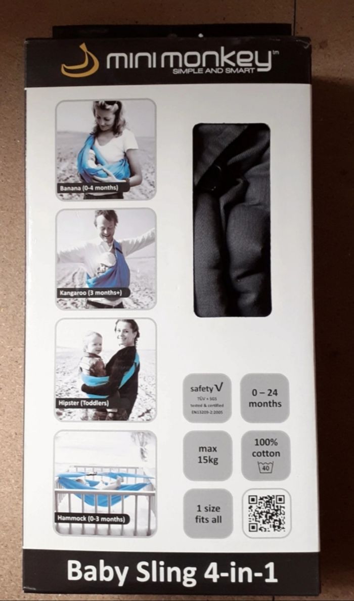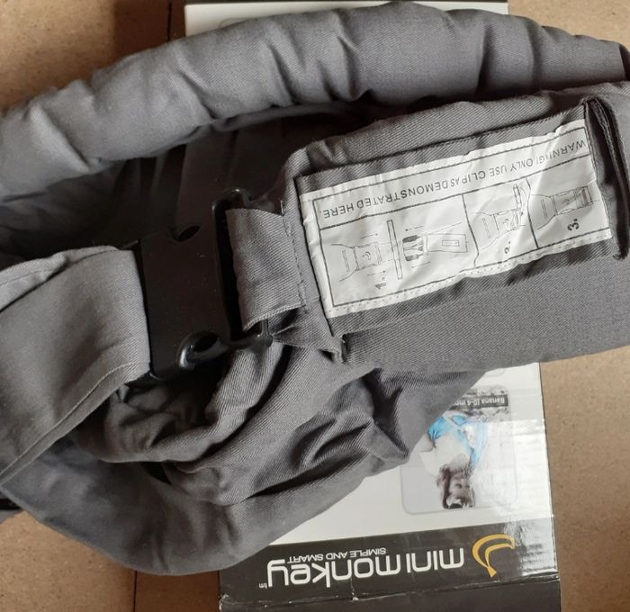 Je vends ce porte-bébé Mini Monkey en gris anthracite, un accessoire pratique et confortable pour transporter bébé.