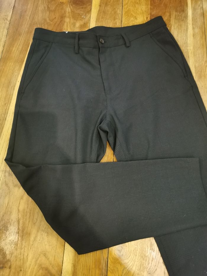 Superbe pantalon homme ZARA bleu marine à carreaux, élégant et moderne, idéal pour une tenue chic, professionnelle ou de cérémonie.