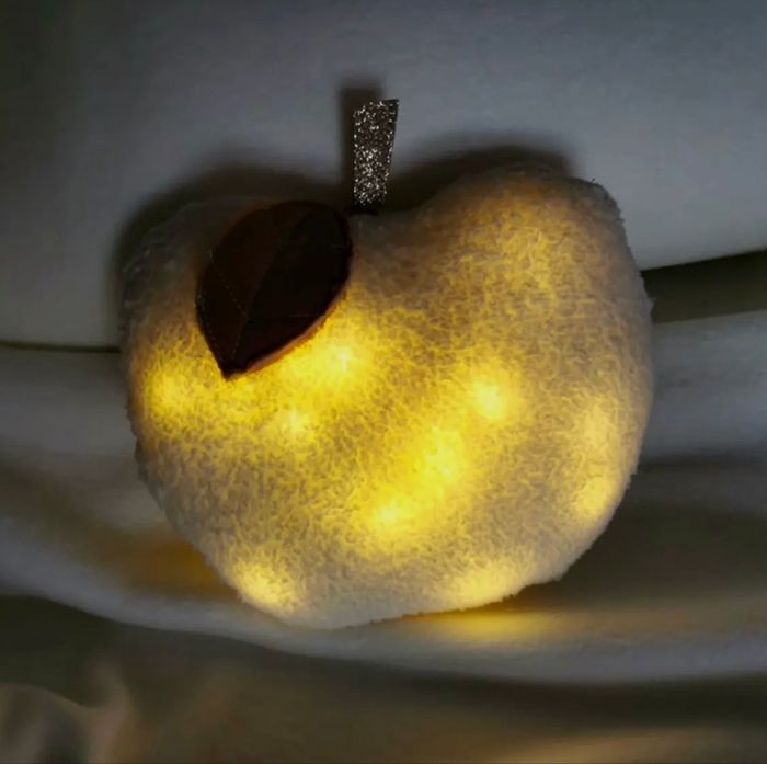 Une création en forme de pomme pour décorer joliment la chambre de votre Mini, que vous pourrez allumer si besoin pour le rassurer, avec sa douce lumière. Un lien permet d'accrocher la veilleuse au mur.