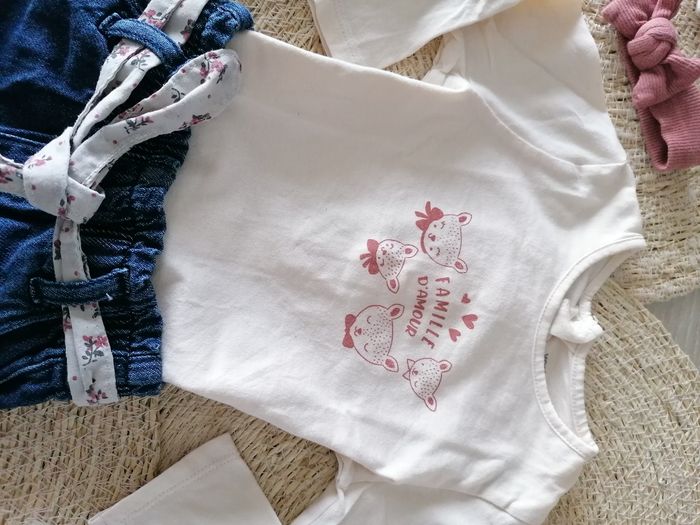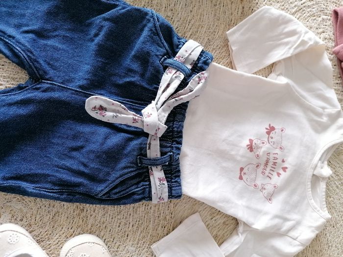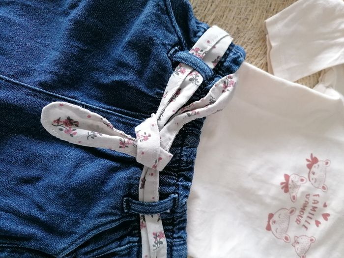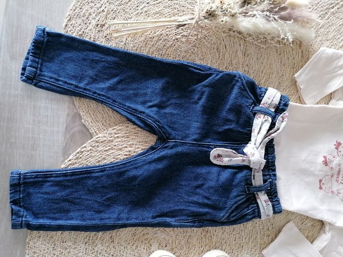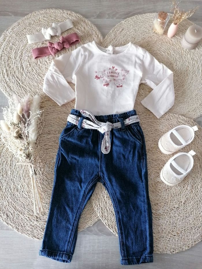 Ensemble jean ceinture élastique et tee shirt manches longues fille