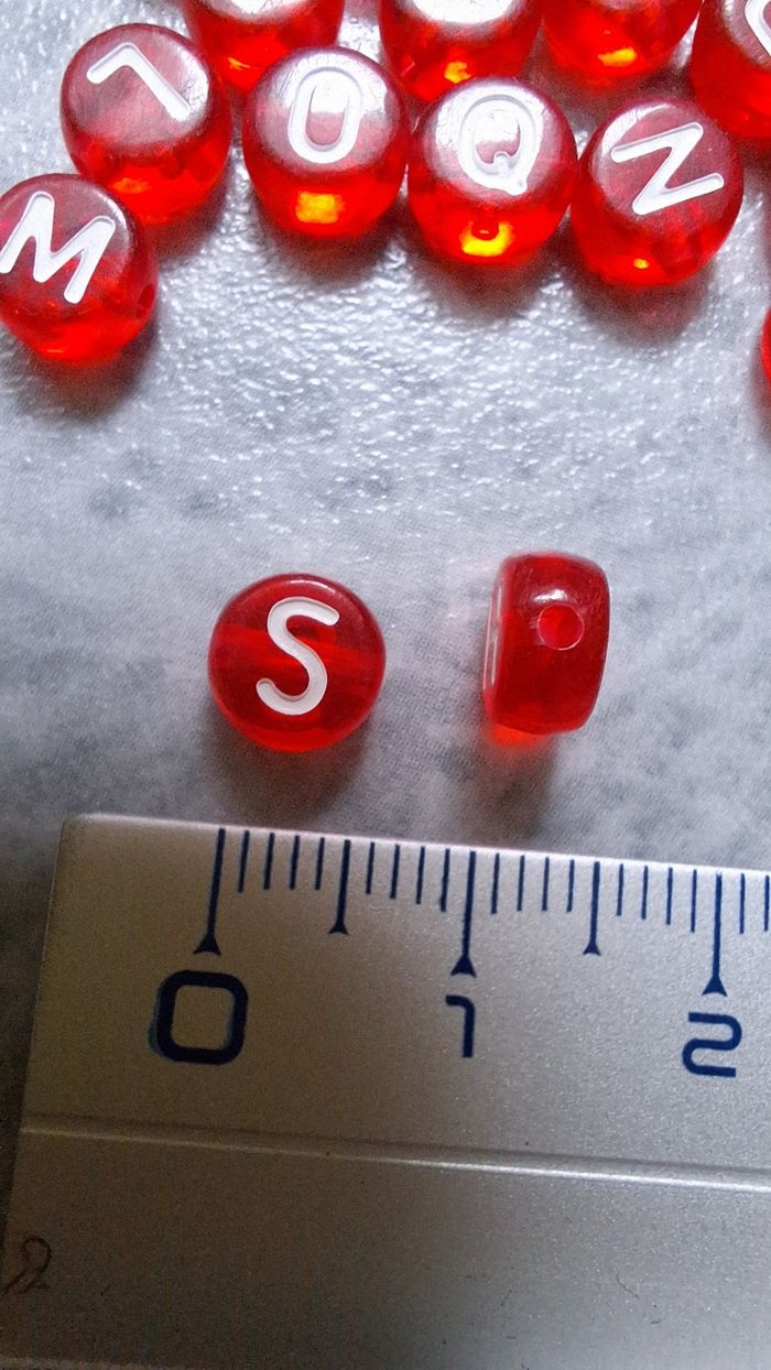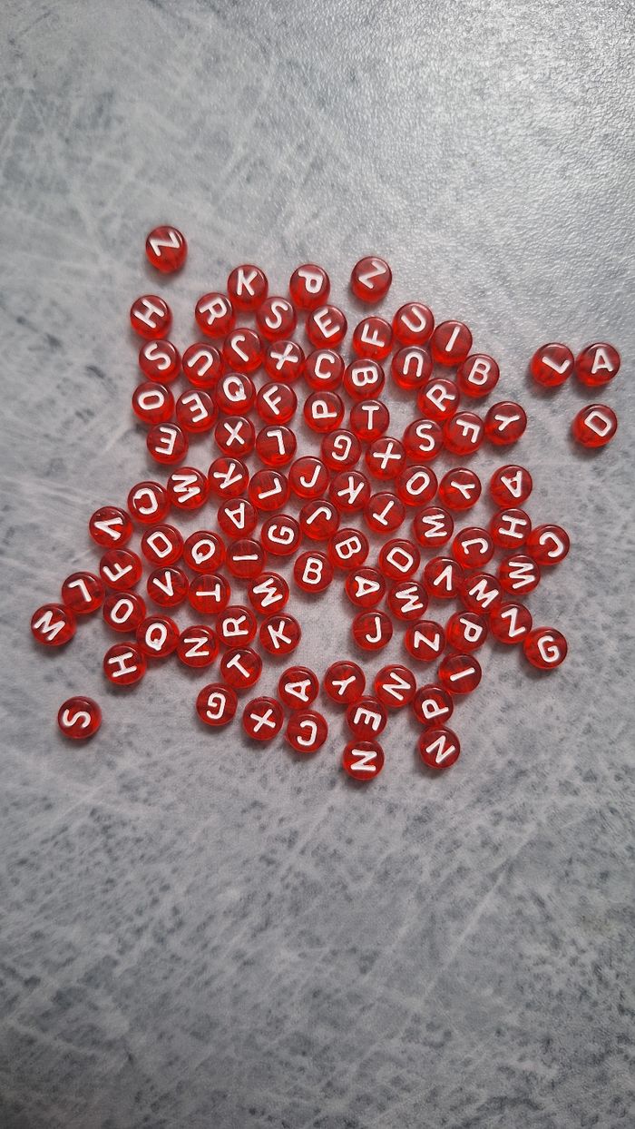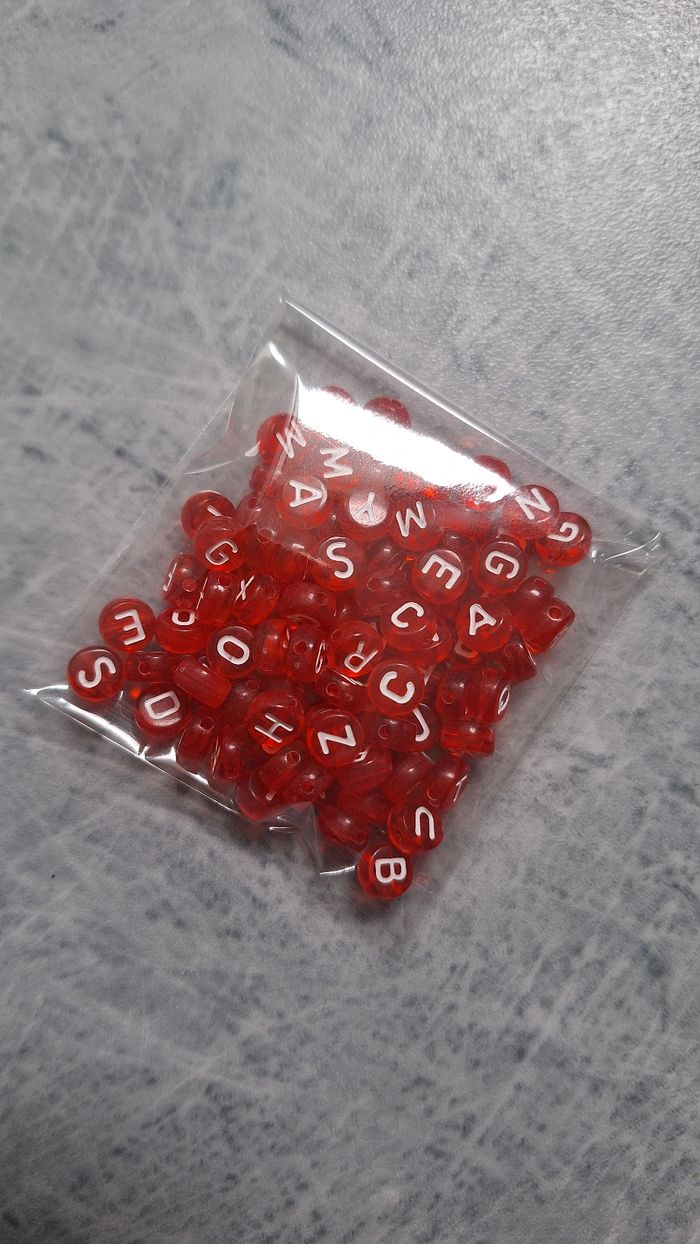 Perles rouges lettres blanches