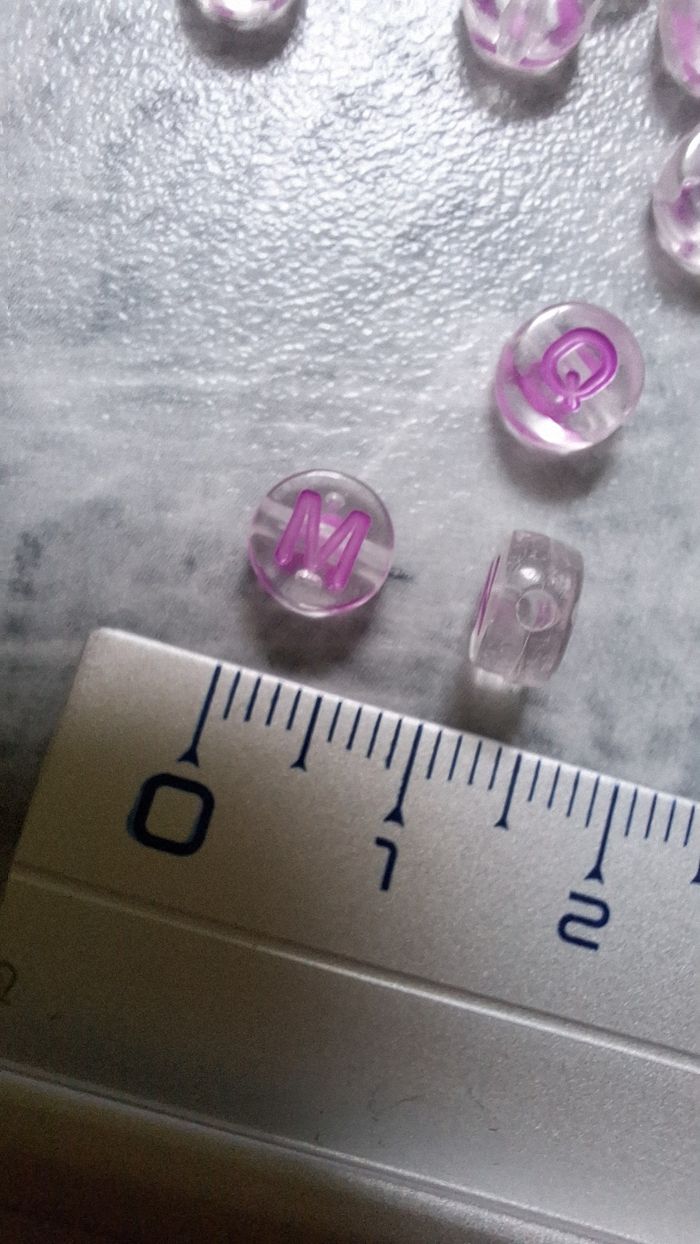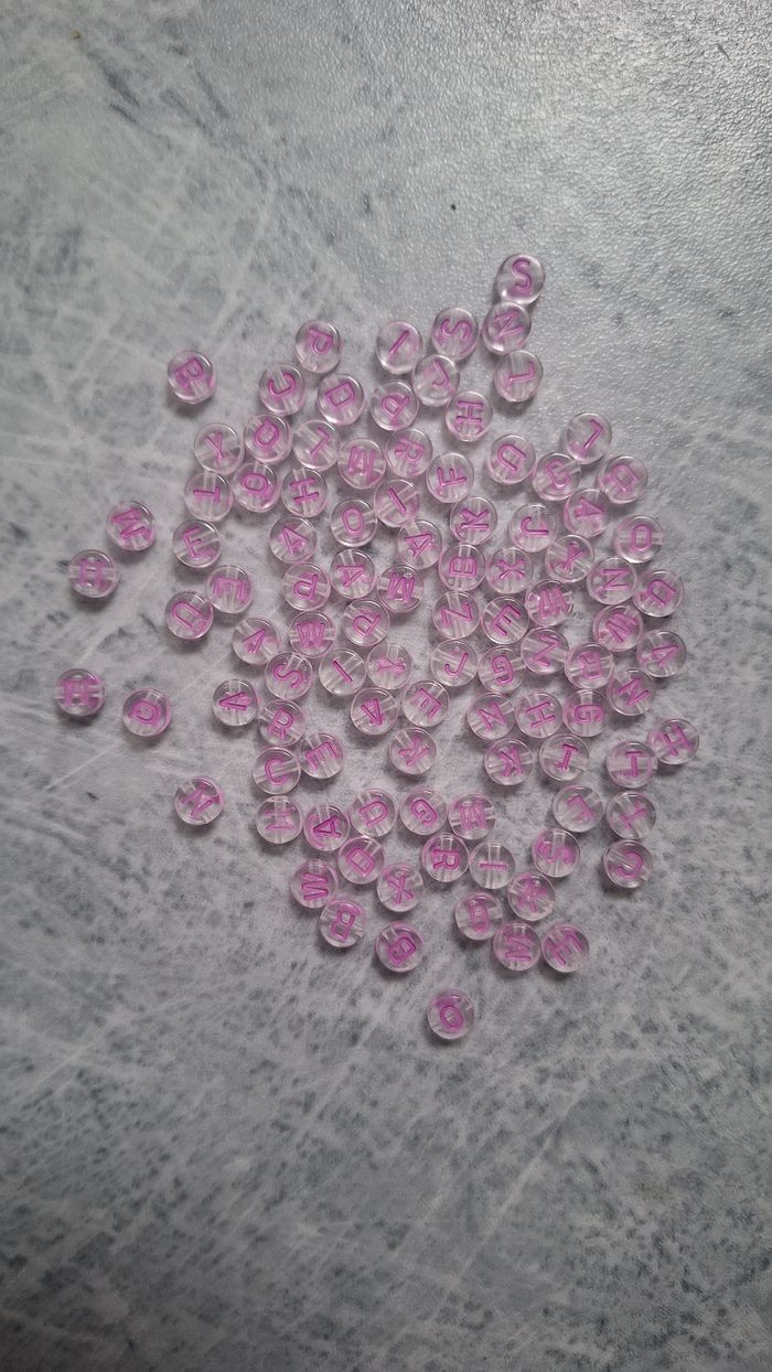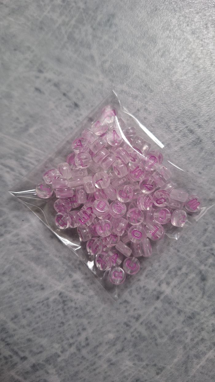 Perles transparentes lettres violettes