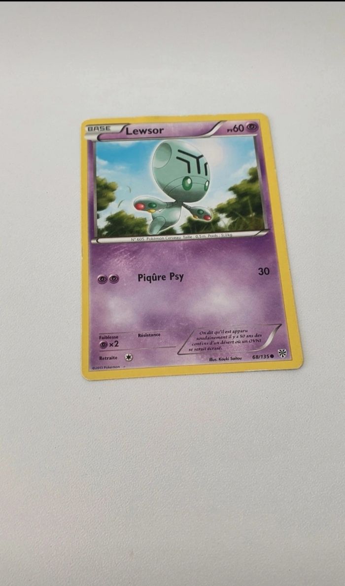 Je vends cette carte Pokémon Lewsor, légèrement abîmée. 63/135