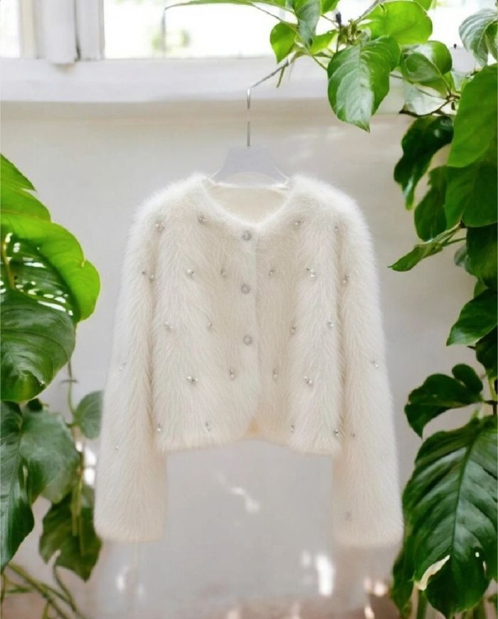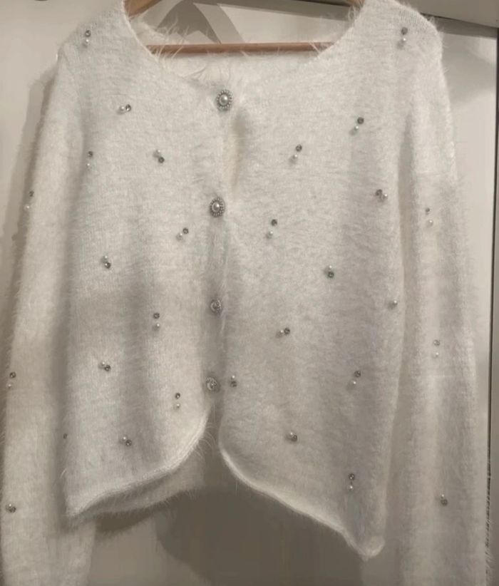 Coupe : Courte (cropped) et ajustée, idéal pour porter sur une robe, un top ou un chemisier.
