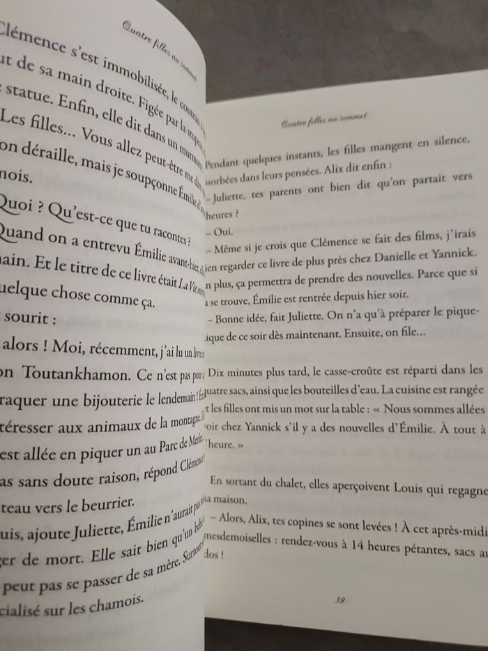 Quatre filles au sommet Quatre filles intrépides, Clémence, Alix, Juliette et Gwenaëlle, partent pour une randonnée vers l'aiguille du Midi. Mais l'aventure les attend au sommet. Sauront-elles faire face à tous les dangers qui les menacent ?