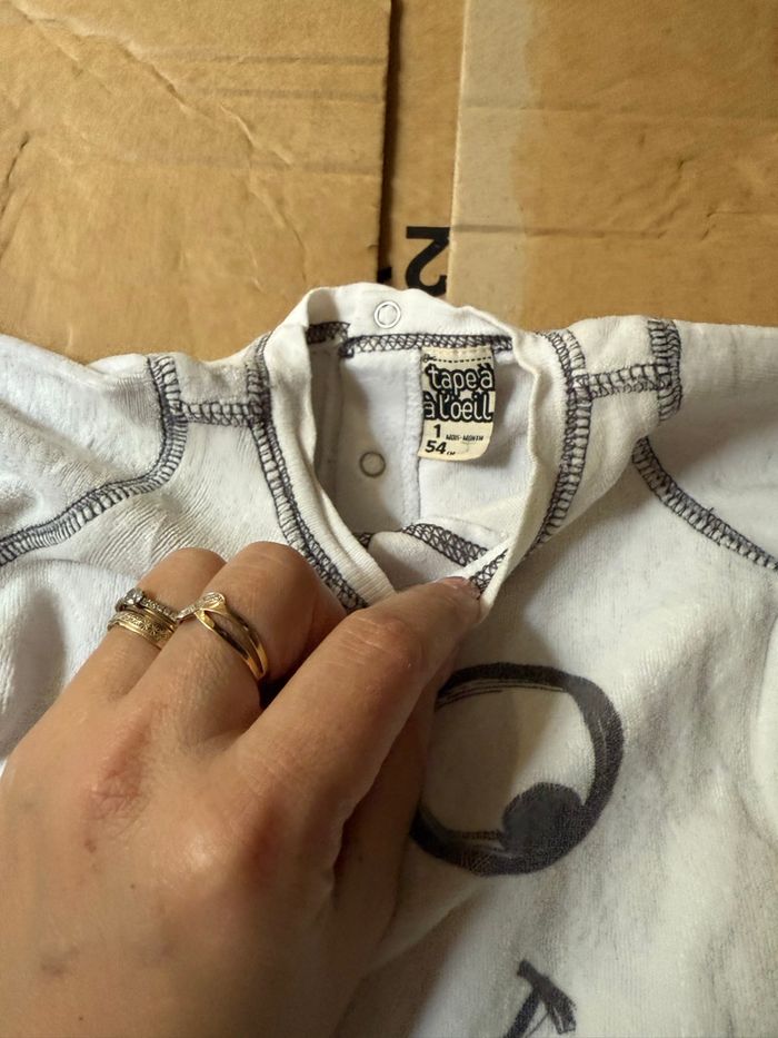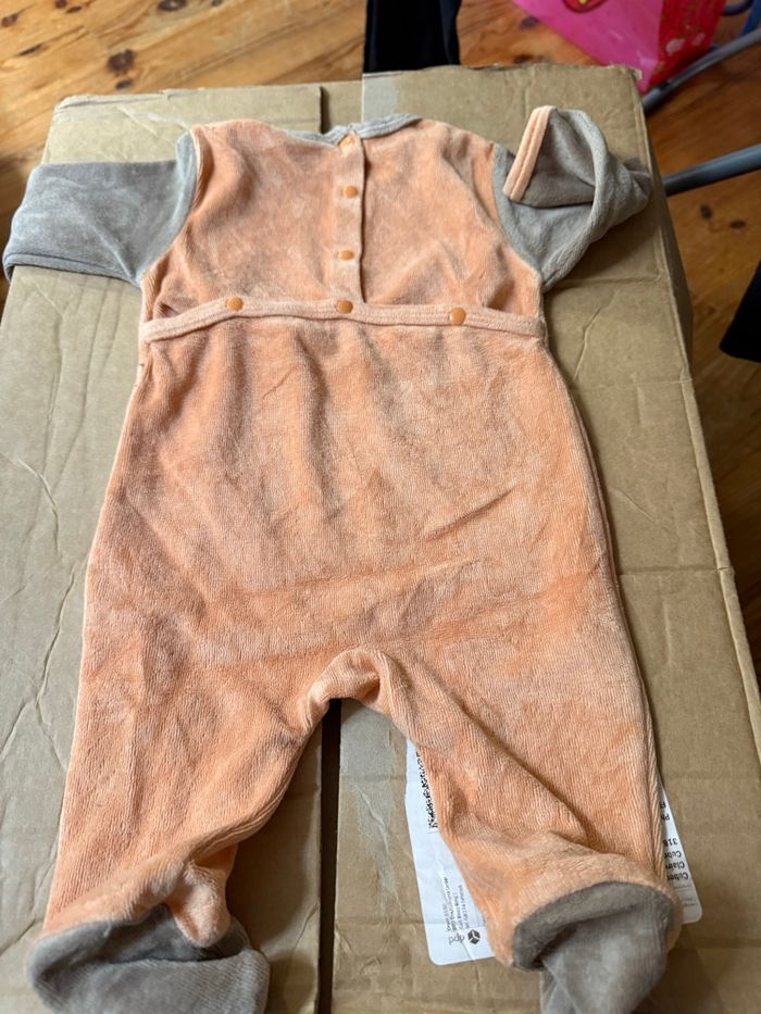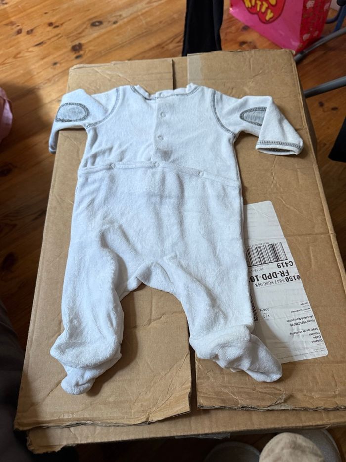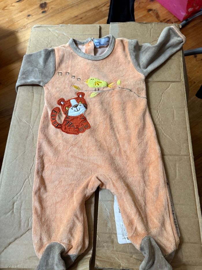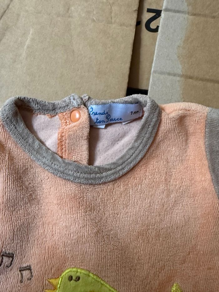 Lot de 3 pyjamas taille 1 mois, en très bon état pour les 3. Un blanc marque tape à l’œil, un orange et marron marque prends ton pouce et un bleu clair sans marque