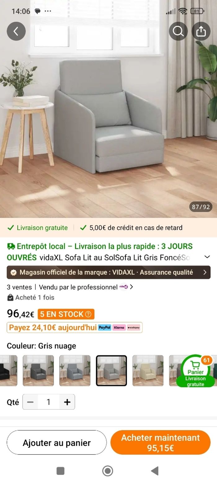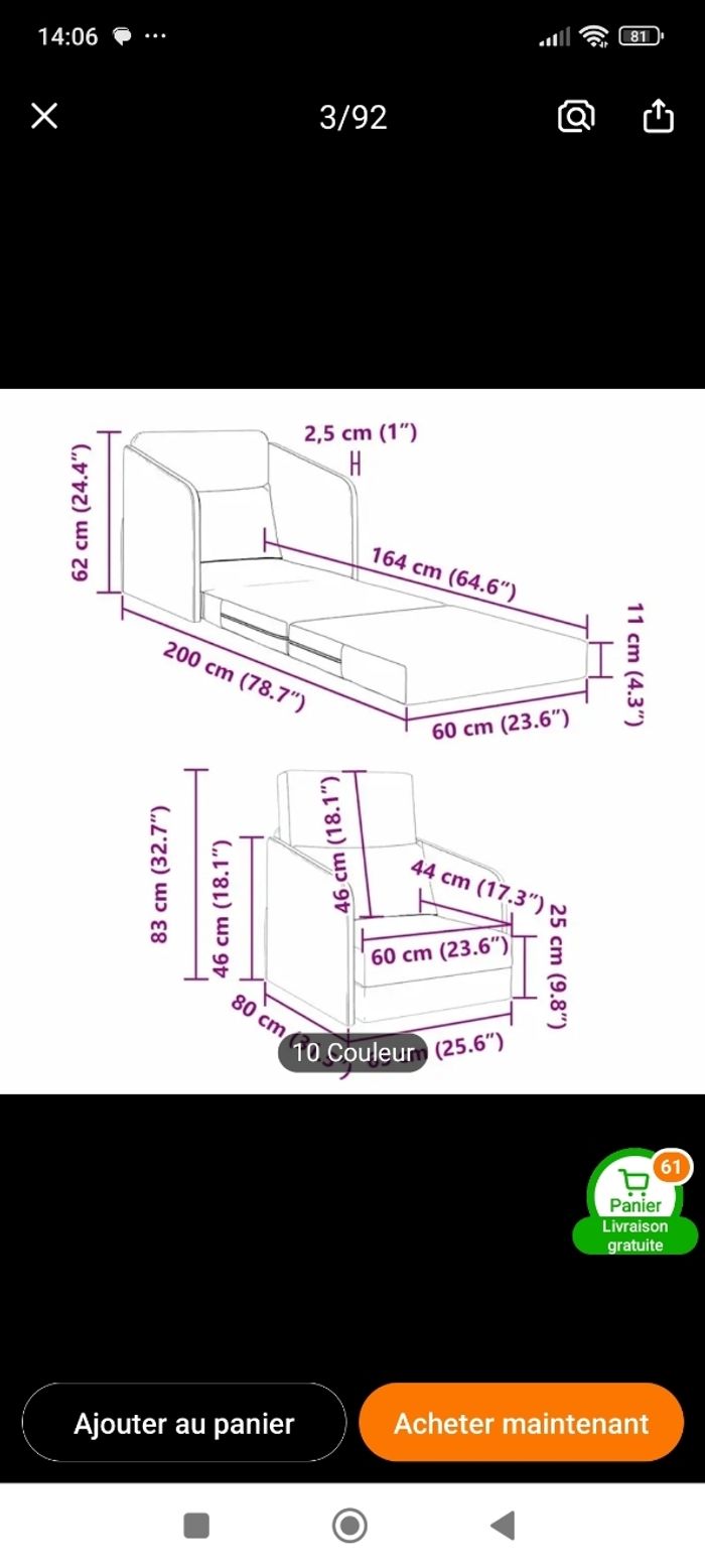 Fauteuil chauffeuse neuf