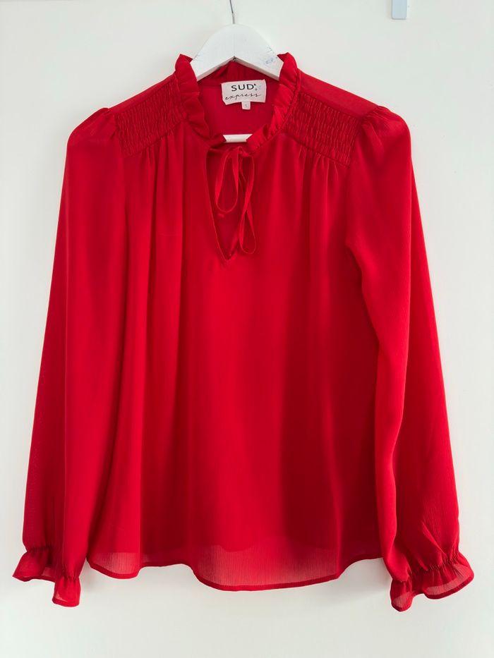 Très jolie blouse rouge SUD EXPRESS, marque connue pour ses pièces féminines, élégantes et bien coupées ✨