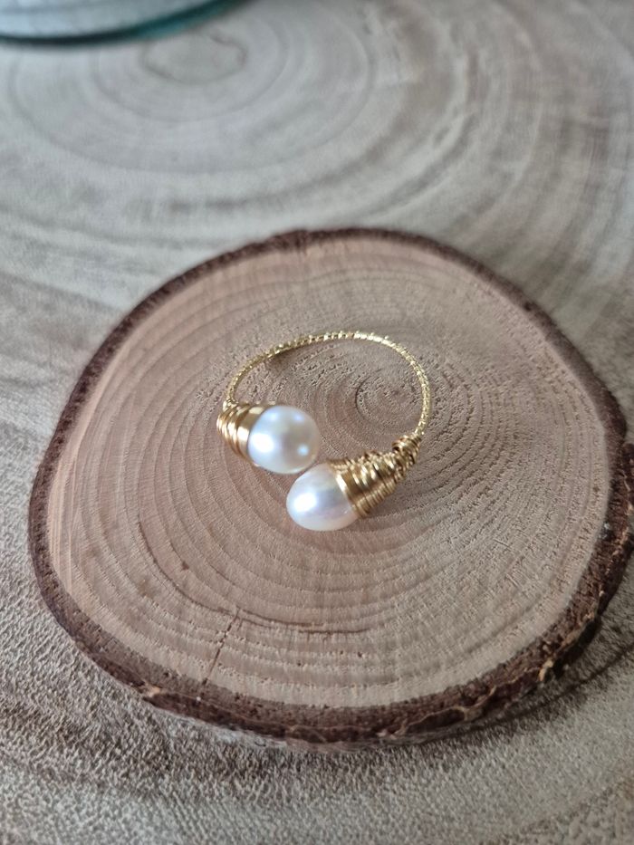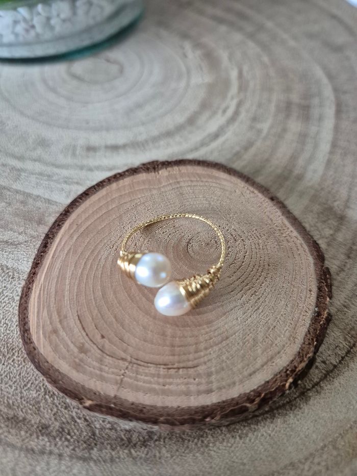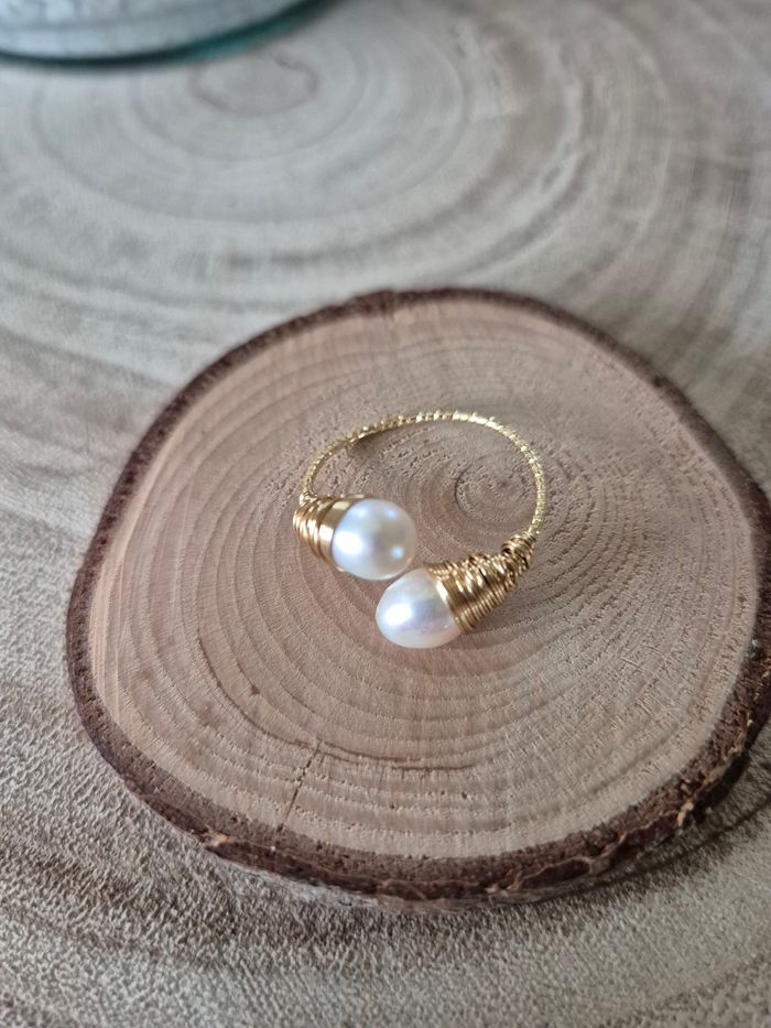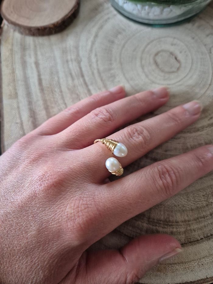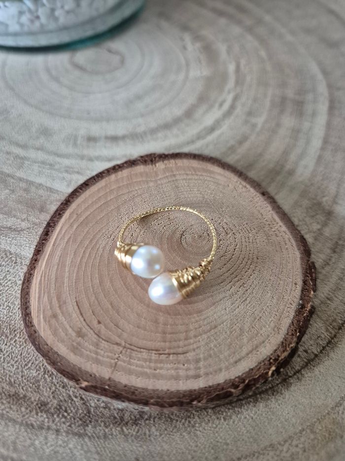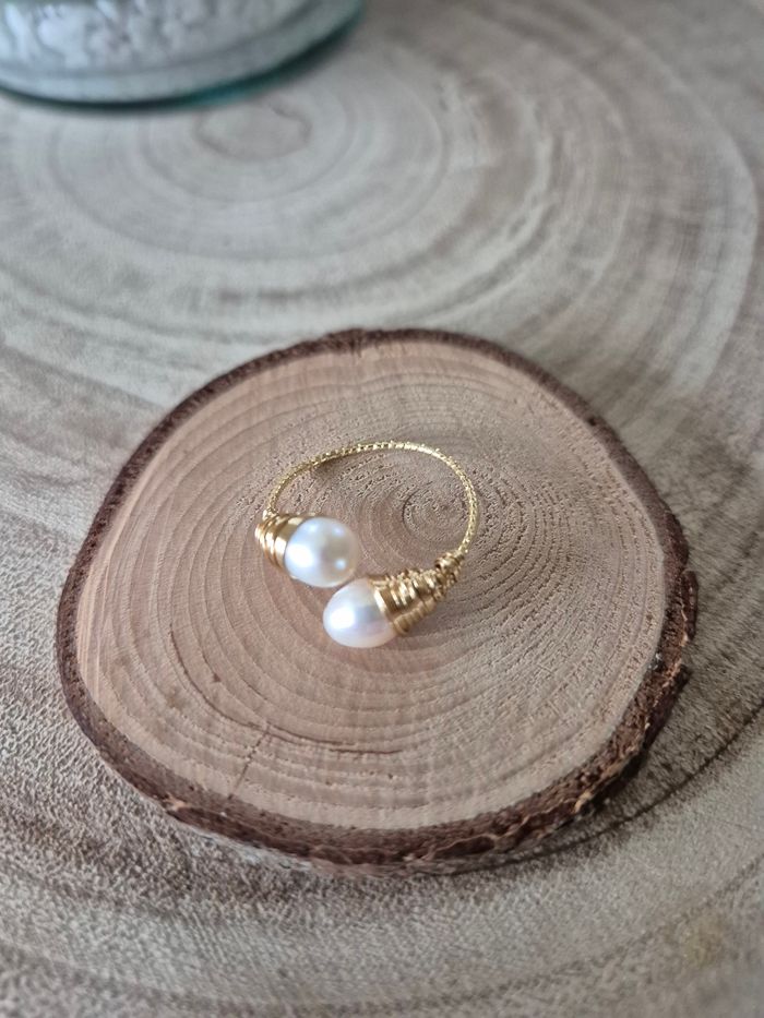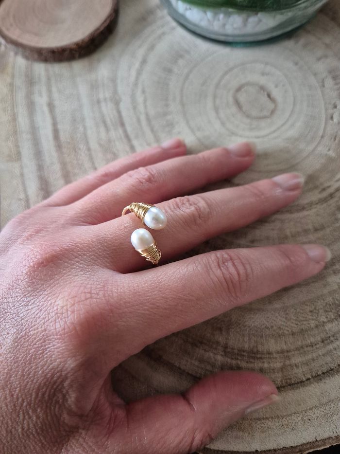Bague reglable |perles de culture | Laiton et cuivre