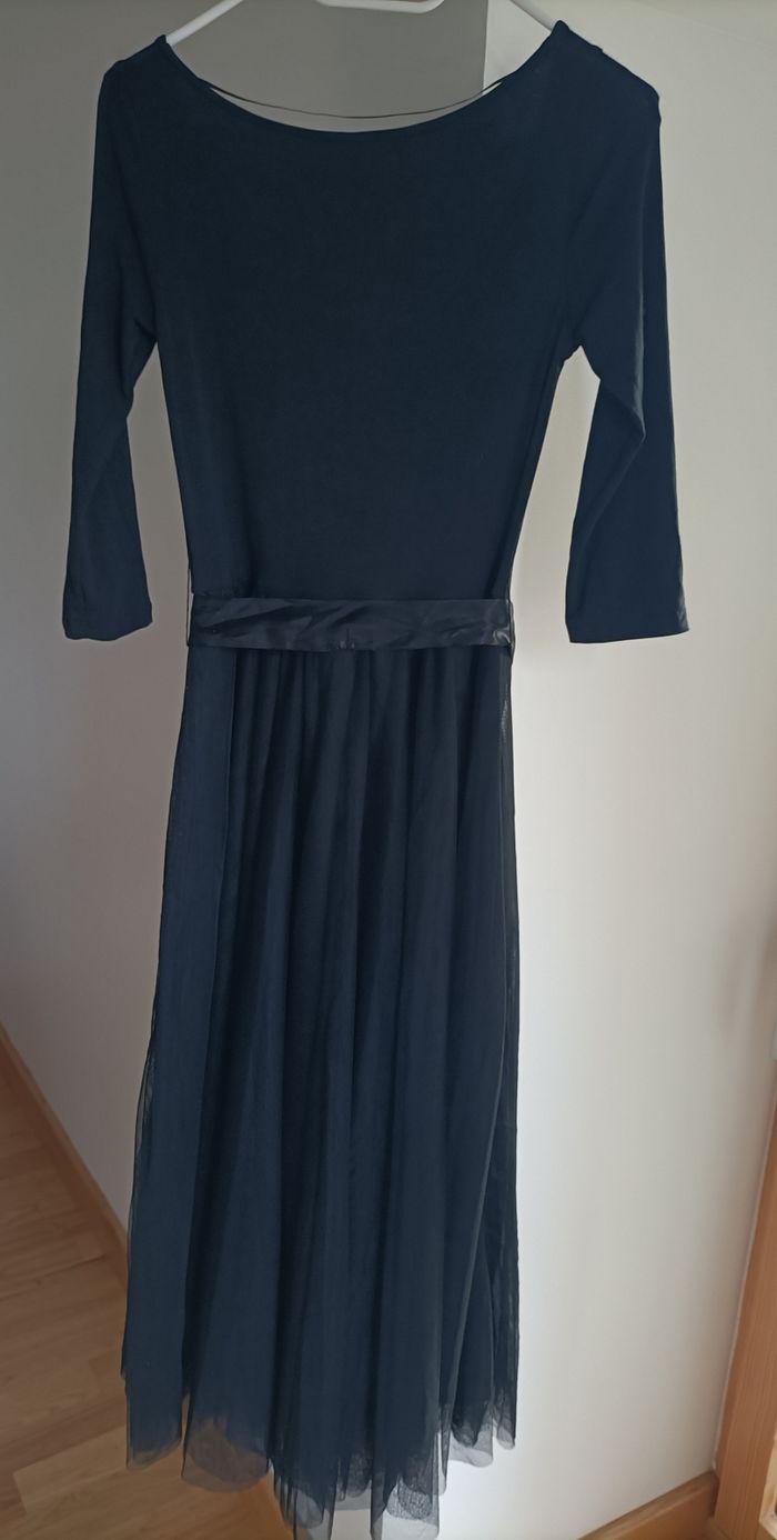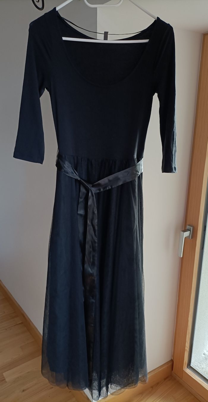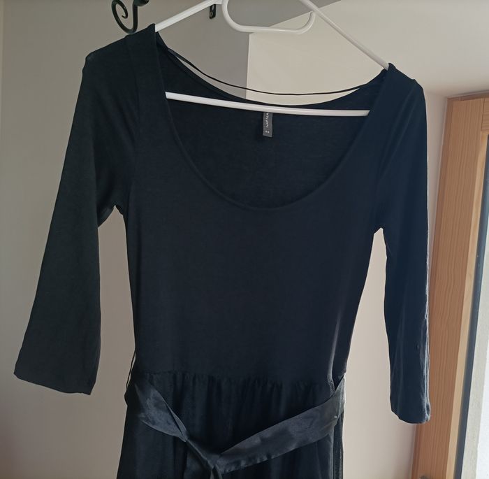 Robe noire femme Naf Naf 34 XS longue tulle manches 3/4 très bon état